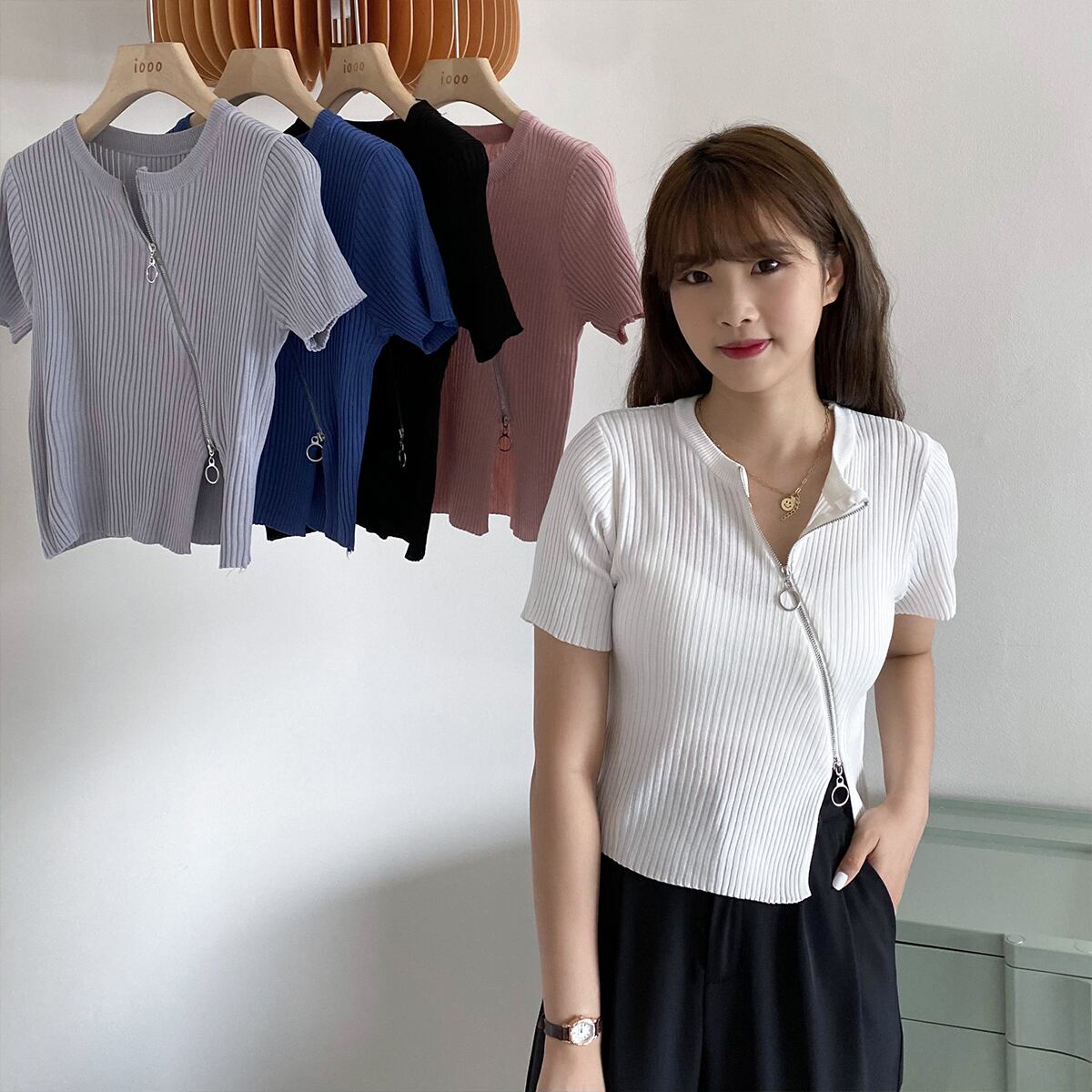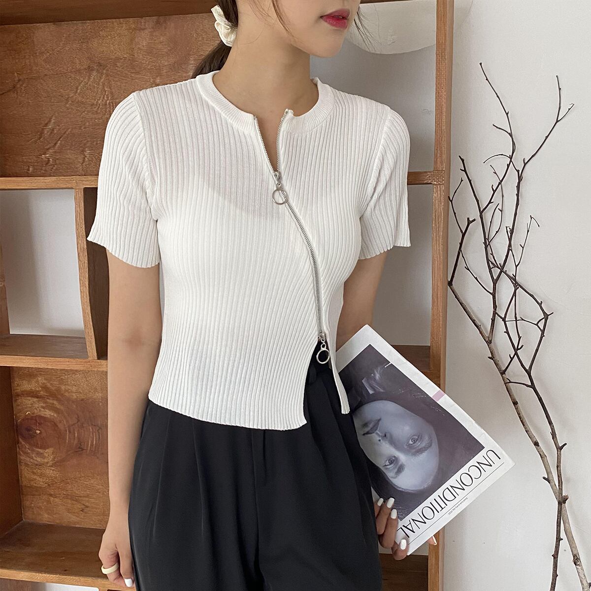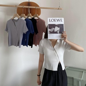 ショートTシャツ サマーハイウェストニットトップス 夏物 クレセントシティ94381735408