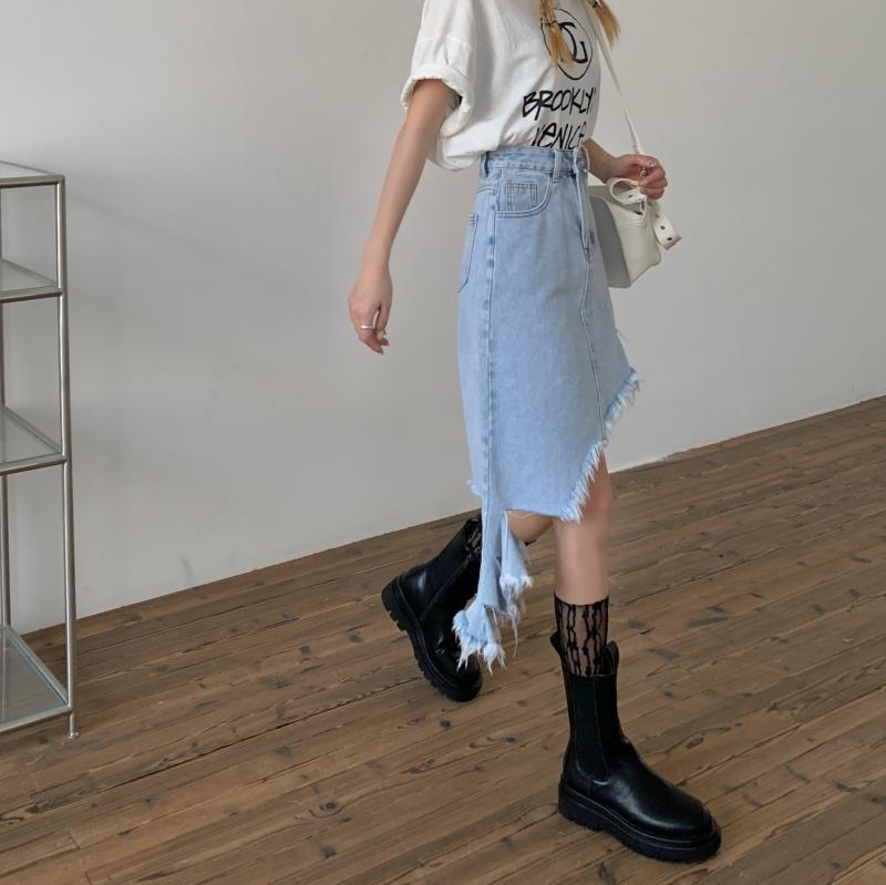 スカート サマーハイウェストウェスト薄手Aライン 夏物 クレセントシティ96226376896