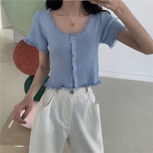 レースショートセーター サマースリムブラウス 大人ガーリー スウィート キュート カジュアル 夏物 スクウェア クレセントシティ14776538866