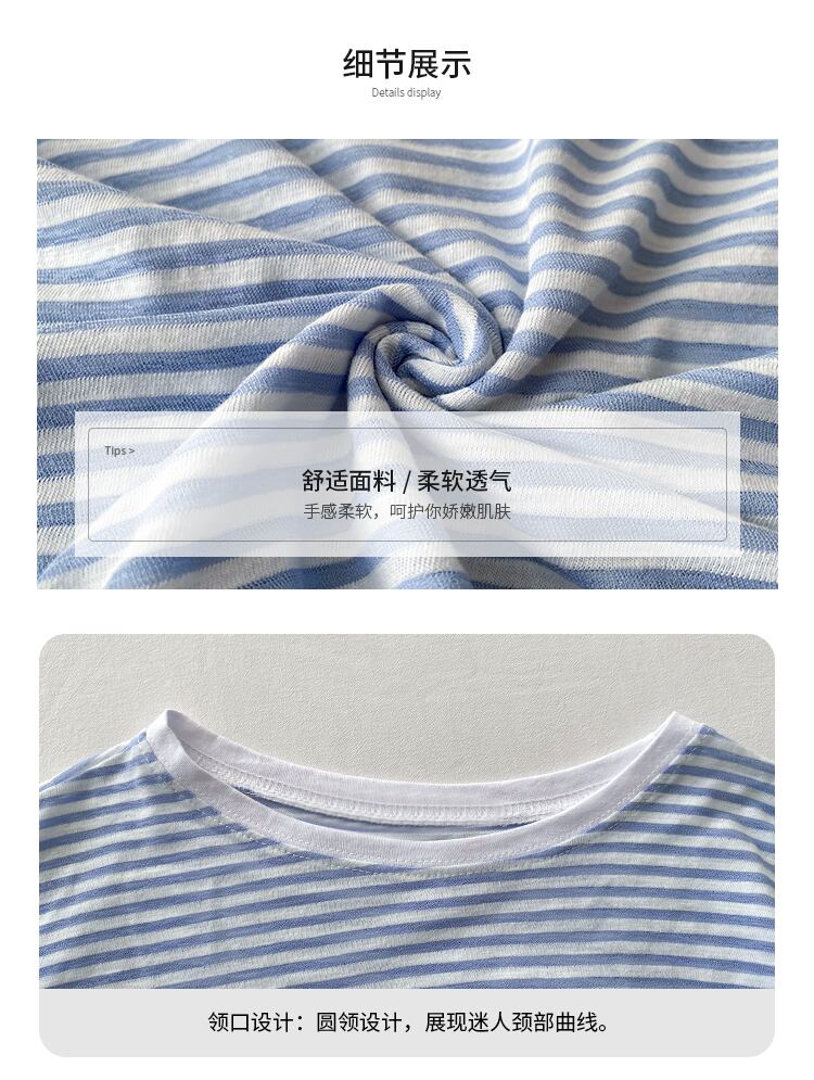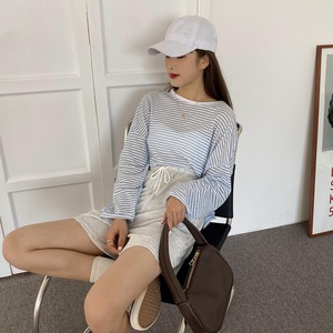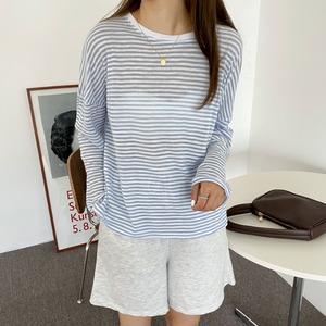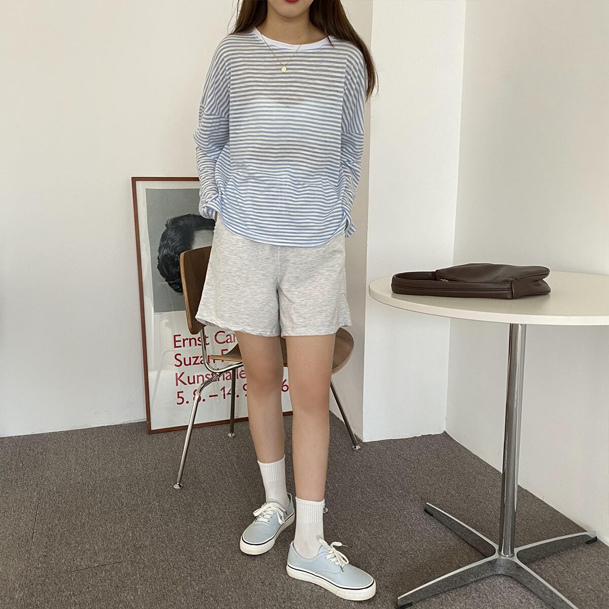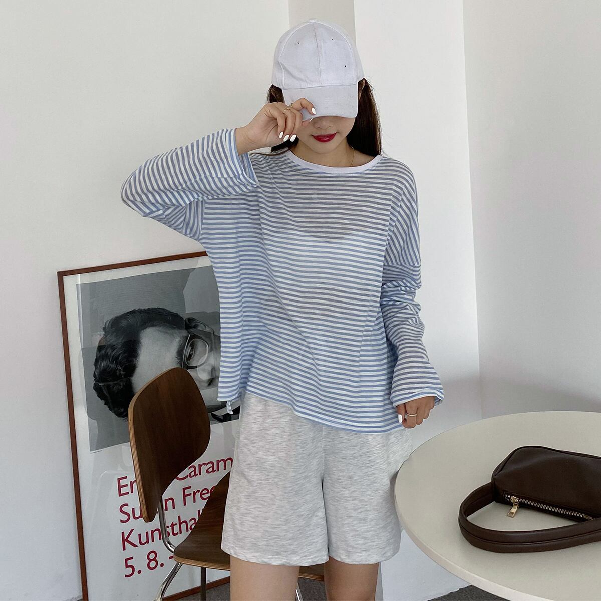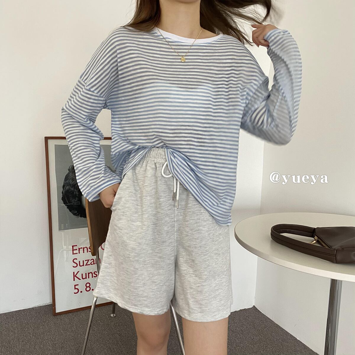 サマー薄手ストライプ長袖スリーブルーズワイドレッグショーツ セット ロング 夏物 ブルマー ワイドパンツ クレセントシティ75311819984