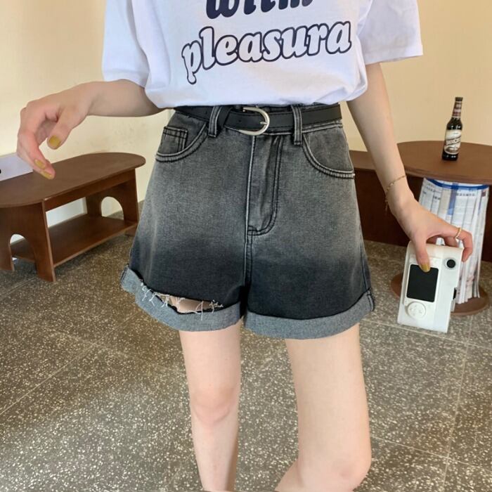 ジーンズ サマールーズ薄手ショーツ ハイウェストウェストワイドレッグパンツ 夏物 ブルマー ワイドパンツ クレセントシティ79497047015