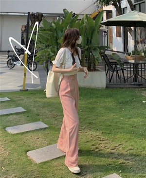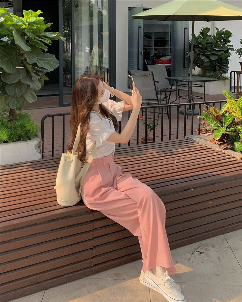 サマーホワイトシャツ カジュアルハイウェストパンツ 夏物 クレセントシティ5312520888