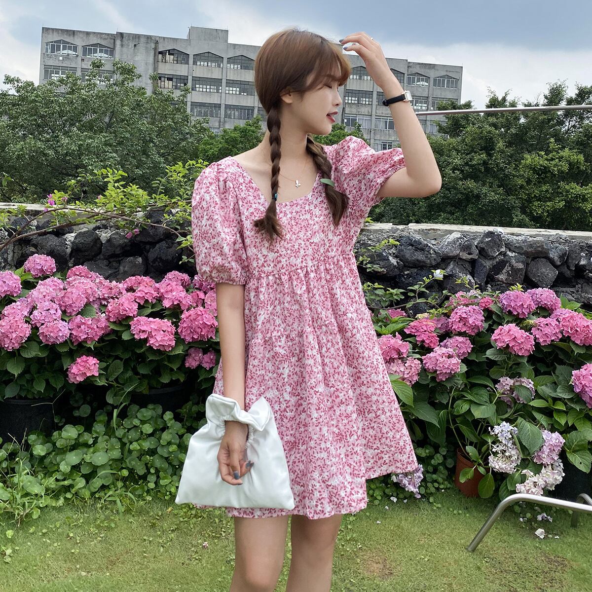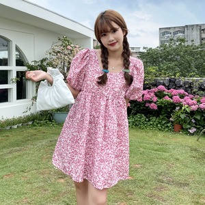 ドレス ウェストサマースリーブスカート リボンホルターフローラル 夏物 花柄 クレセントシティ21642412494