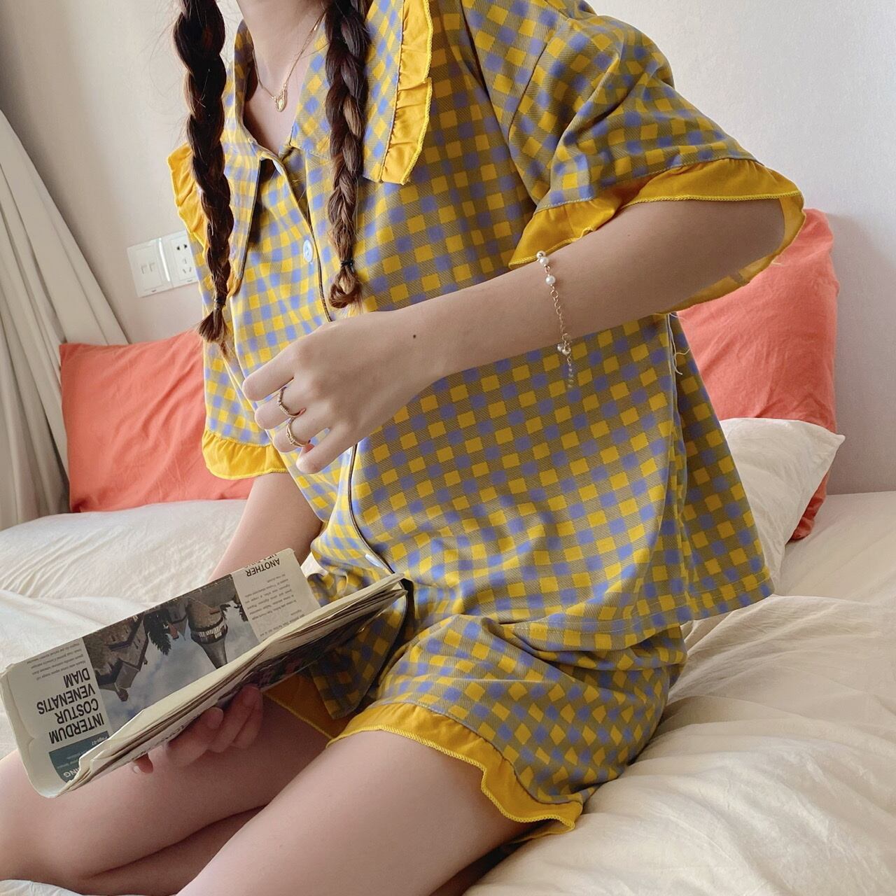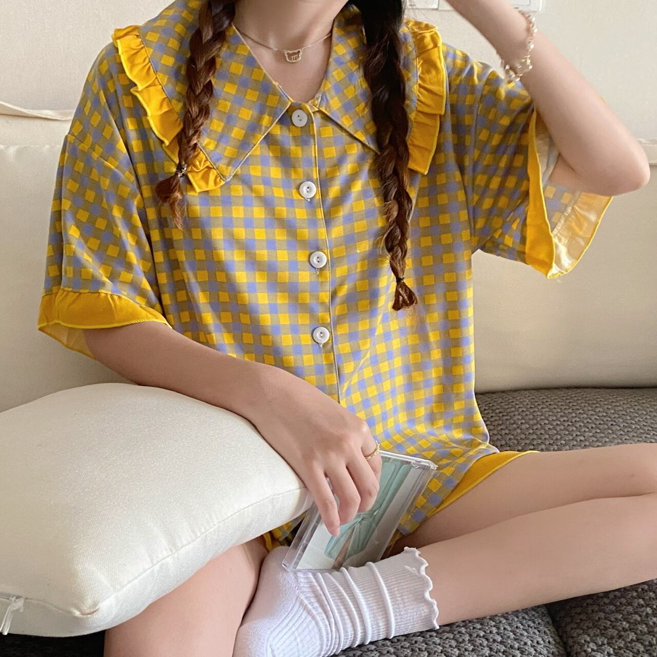 カラー格子柄サマールーズショーツ 大人ガーリー スウィート キュート カジュアル 夏物 ブルマー クレセントシティ50475145354