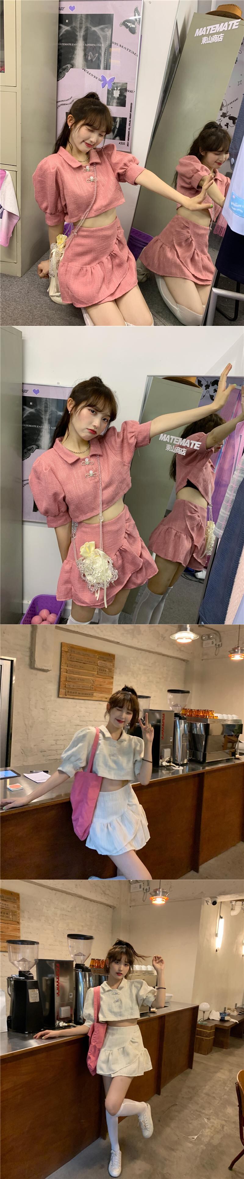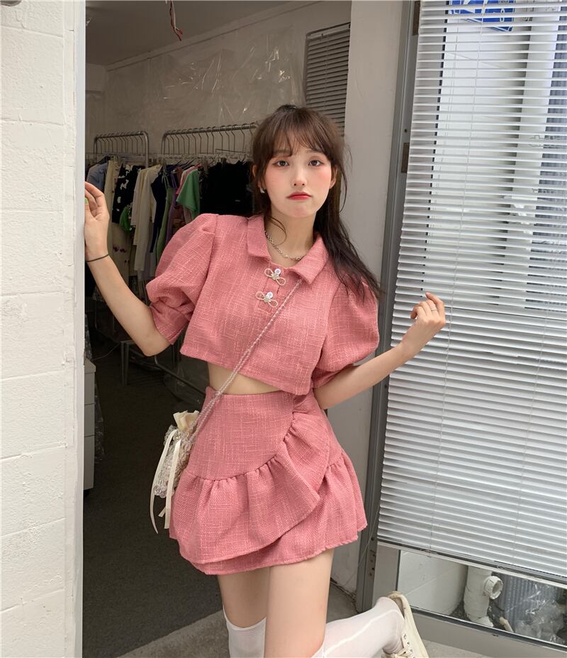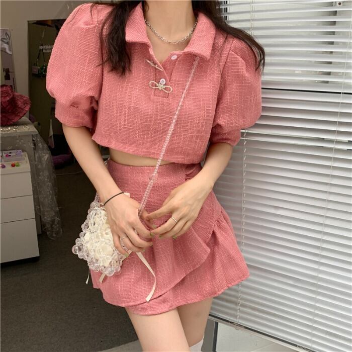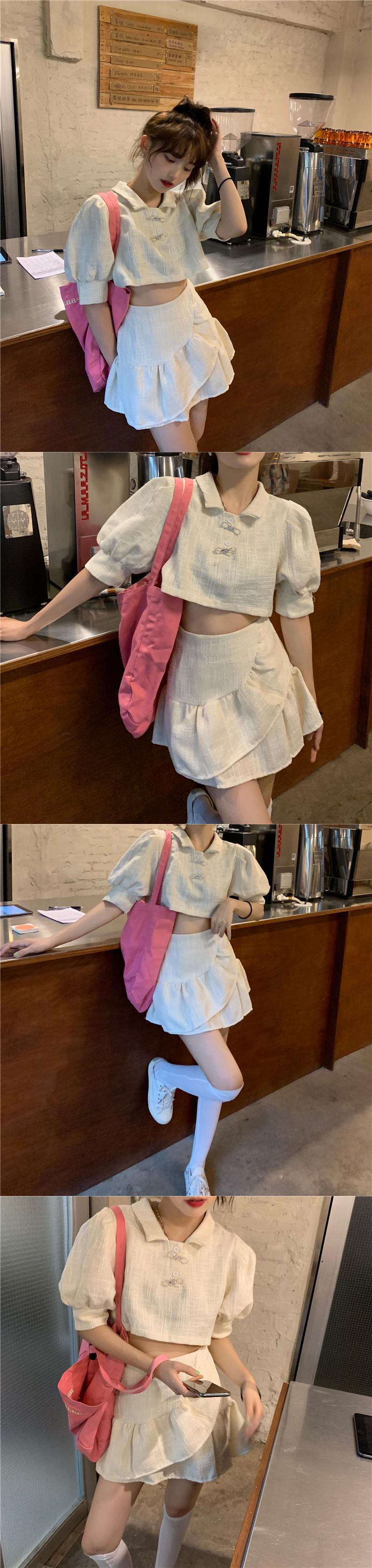 スカート サマースタイルスリーブシャツ ウェストAラインショートセット ストリート 夏物 クレセントシティ50289948095