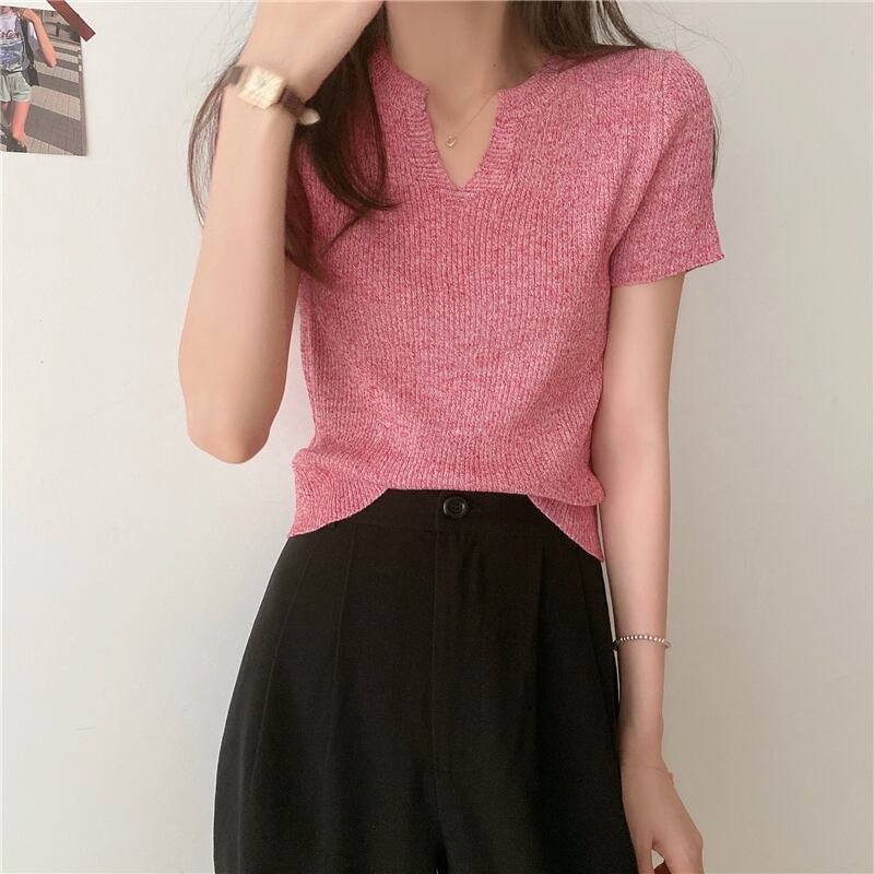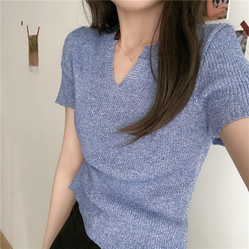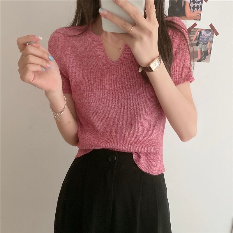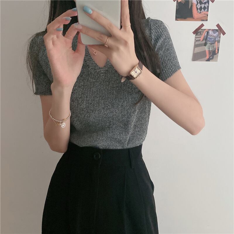 ショートTシャツ サマースタイルスリムブラックセーター トップス 夏物 クレセントシティ63788841469