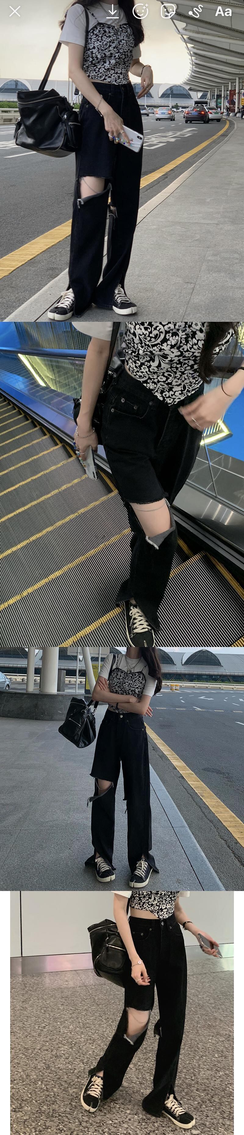 ブラックジーンズ サマールーズハイウェストウェストワイドレッグパンツ 夏物 ワイドパンツ クレセントシティ95641583946