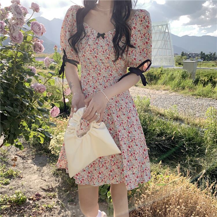 フローラルドレス サマースカート ハイウェストAライン 大人ガーリー スウィート キュート カジュアル 夏物 花柄 クレセントシティ89241445011