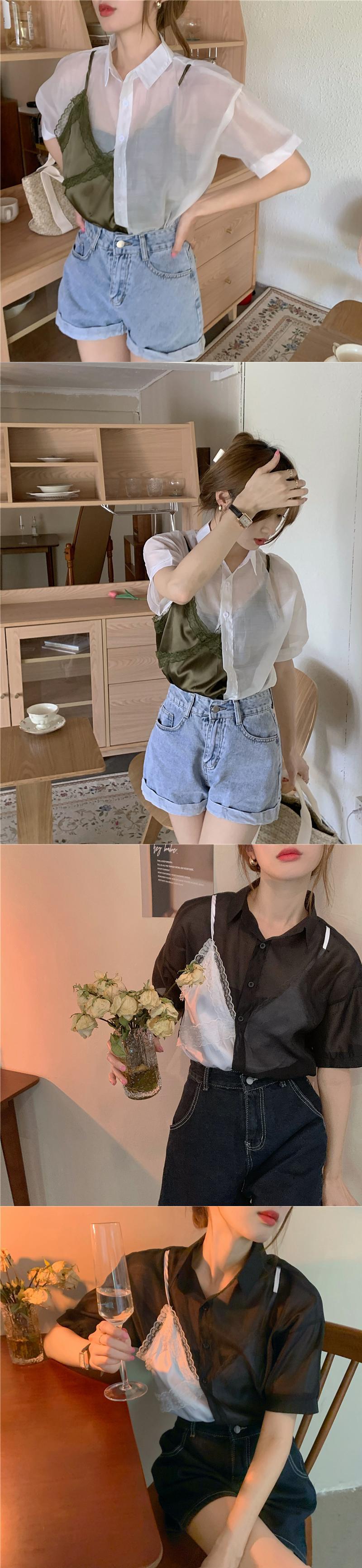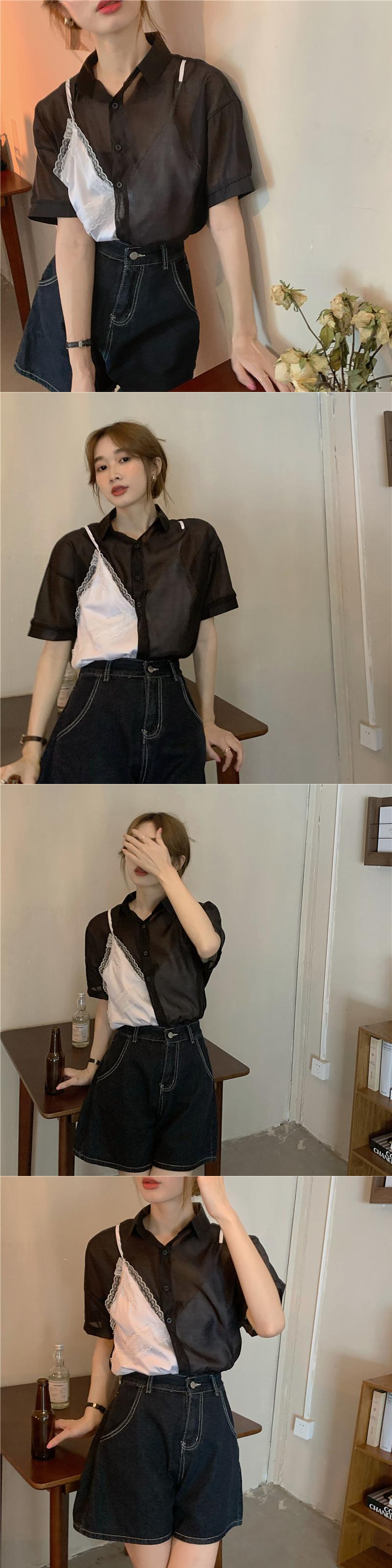 シャツ サマー薄手ルーズシャツ 夏物 ステッチ クレセントシティ71861663651