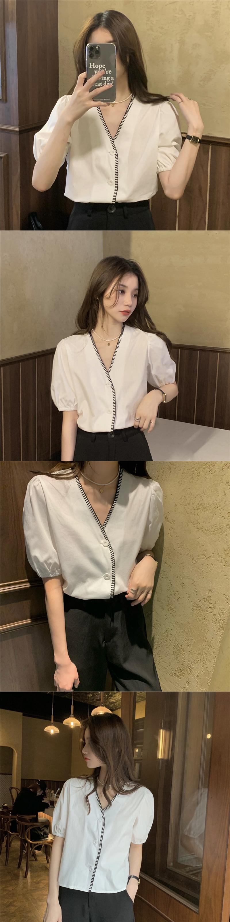 スリーブシャツ サマー薄手ルーズVネック 夏物 クレセントシティ463642484