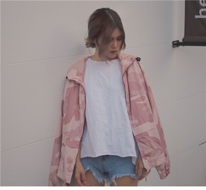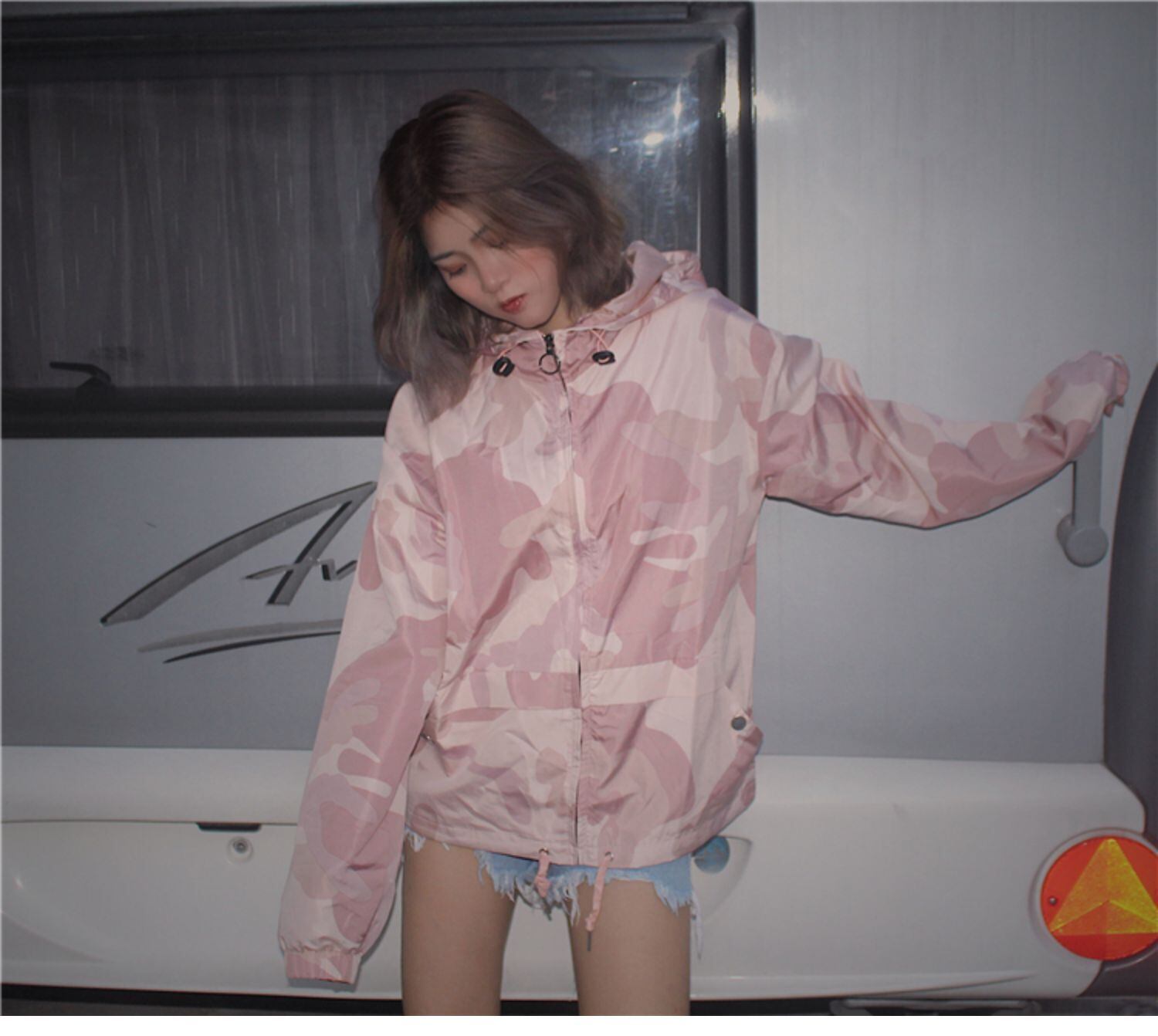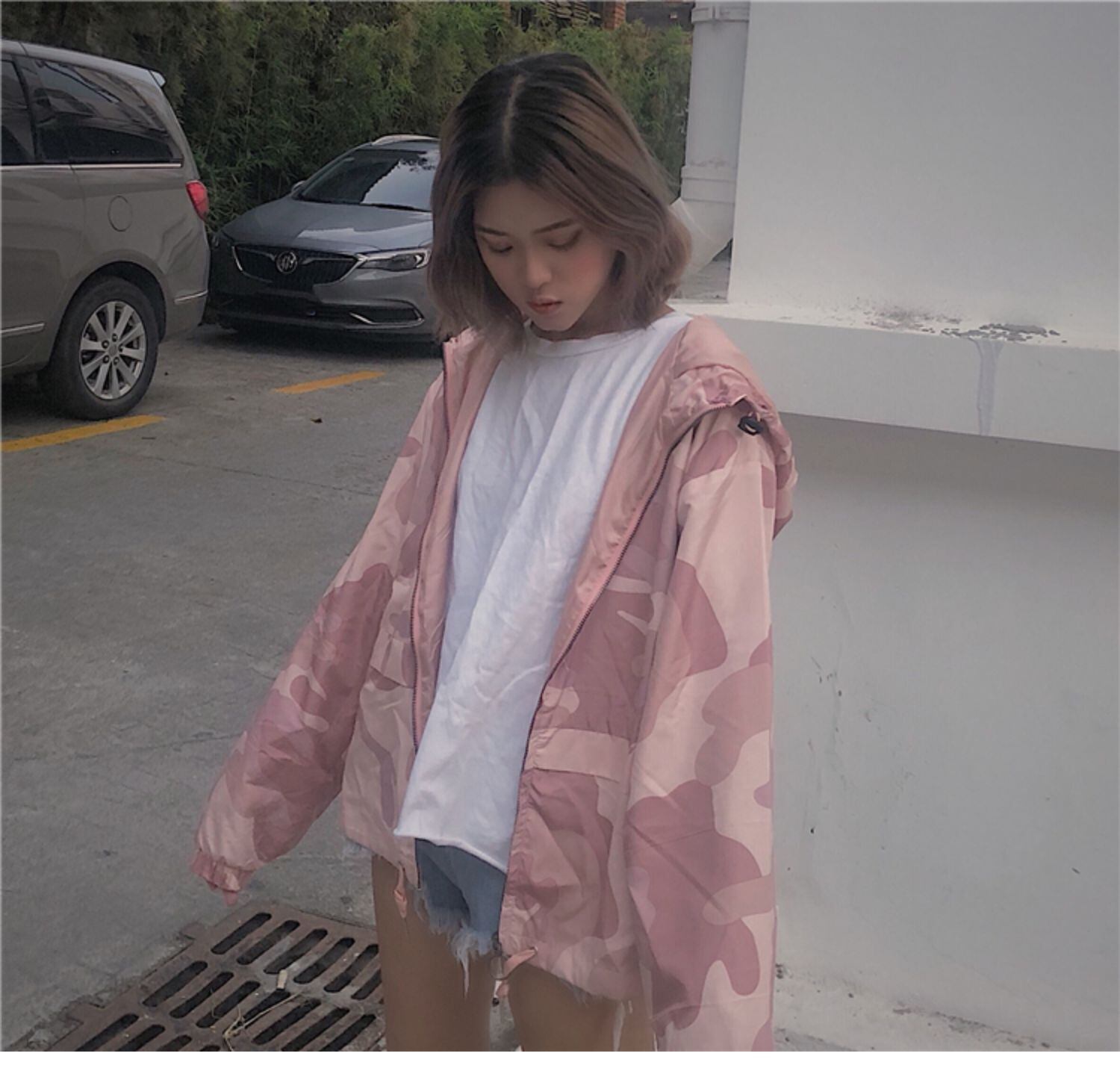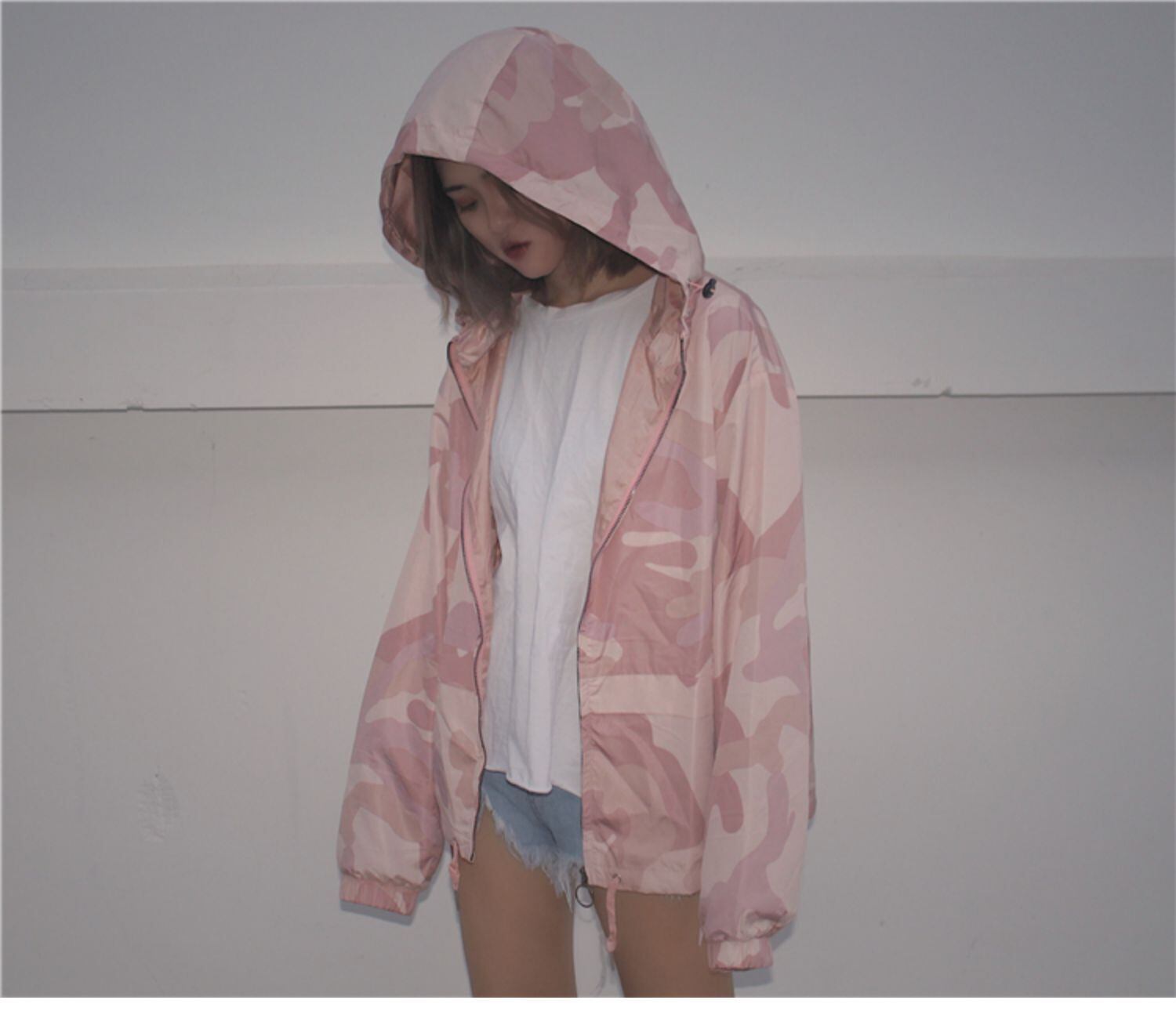 ルーズ迷彩柄フードジッパーカーディガンジャケット ショートスタイル ロング かわいい クレセントシティ27302094087