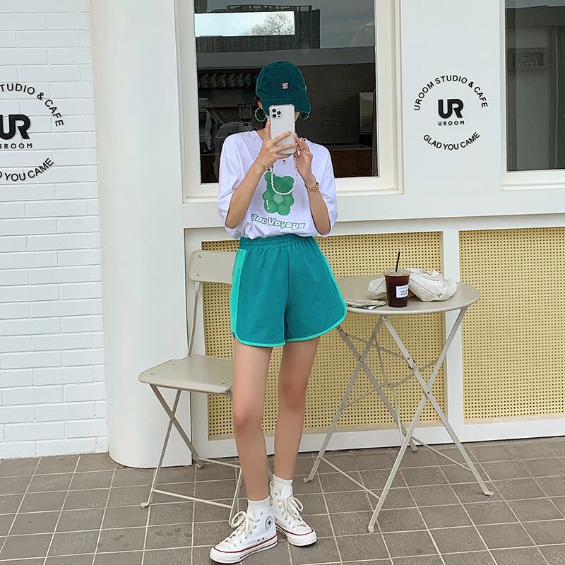 ショーツ サマーストレッチウェストルーズカラーパンツ 薄手カジュアル エラスティック 伸縮 夏物 ブルマー クレセントシティ95301554053
