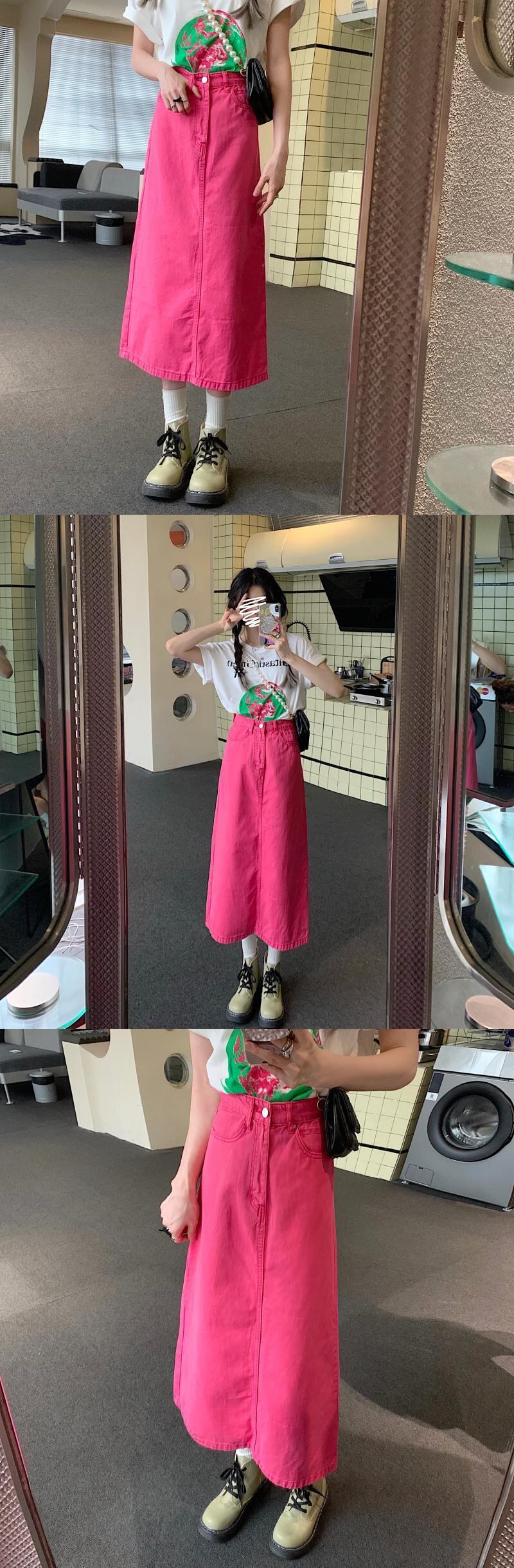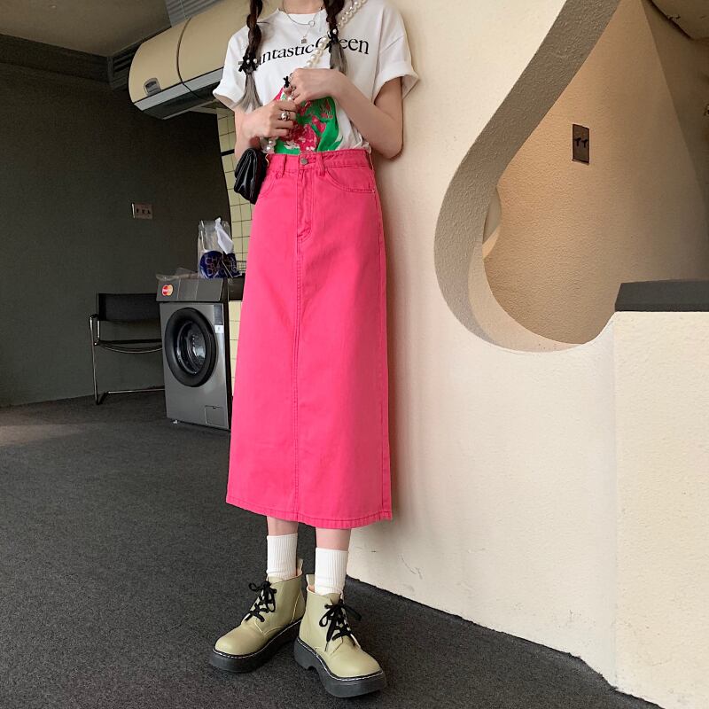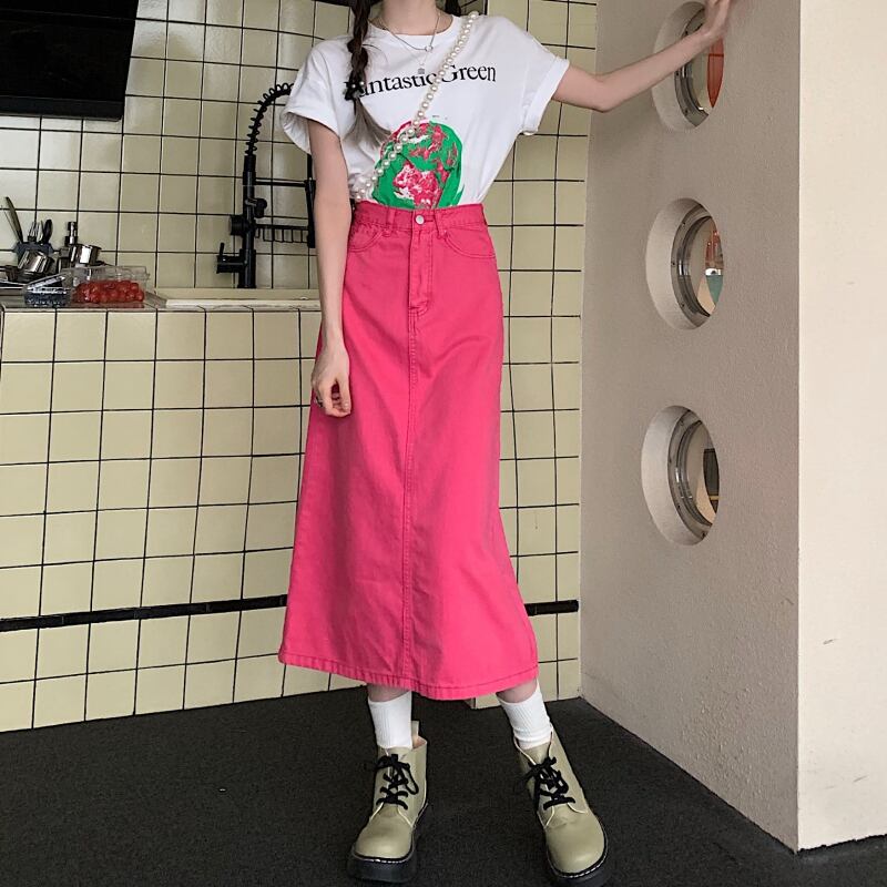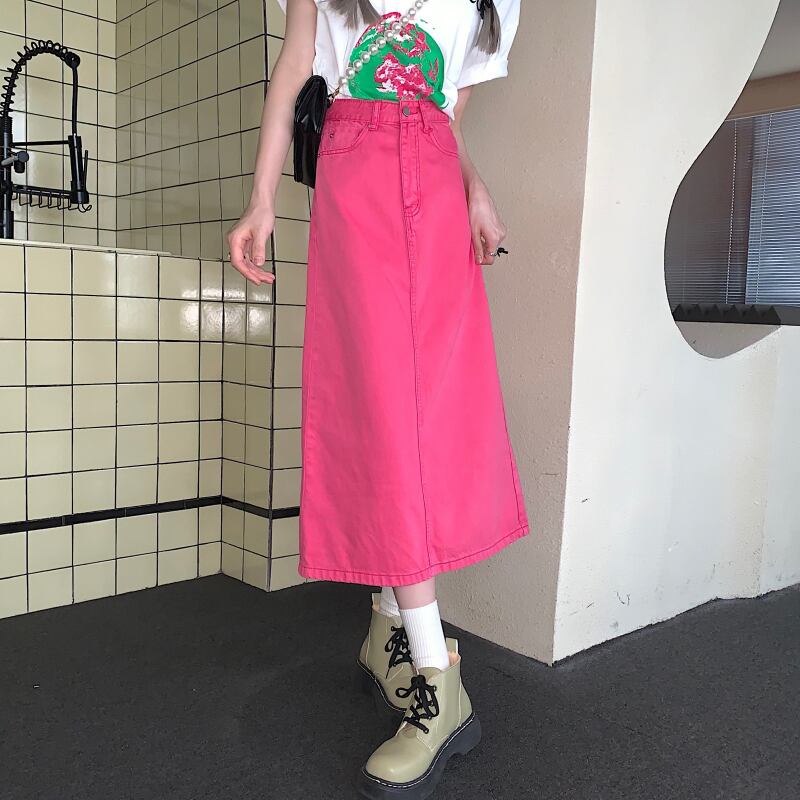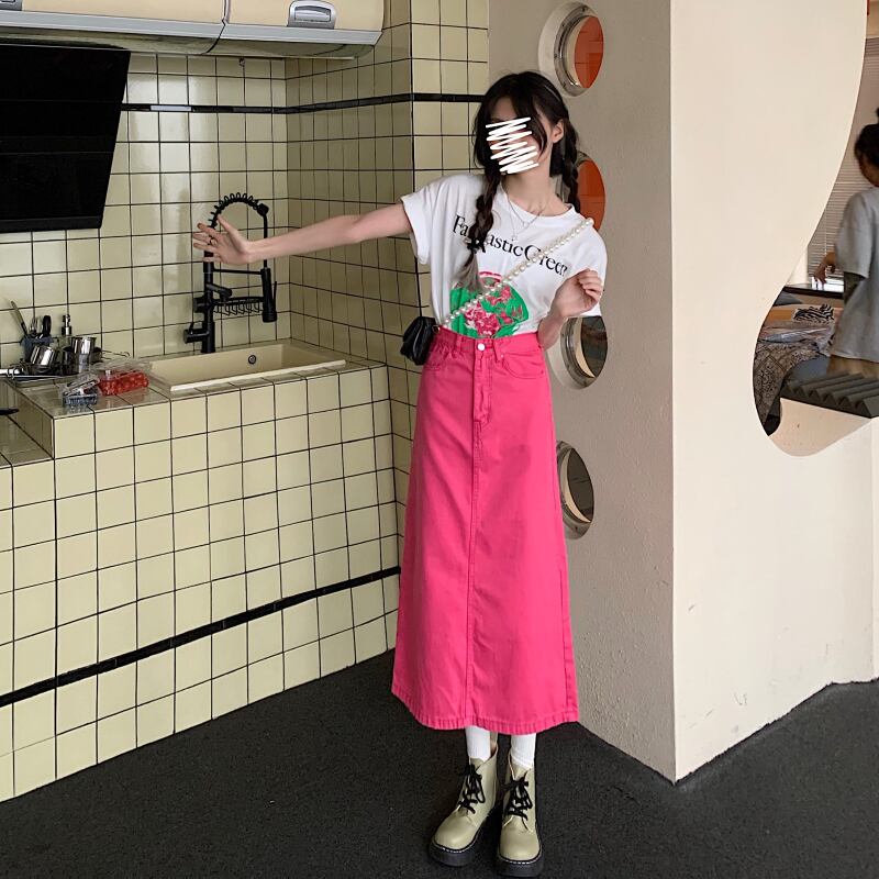スカート サマーハイウェスト薄手Aライン ピンク 夏物 クレセントシティ51641319884