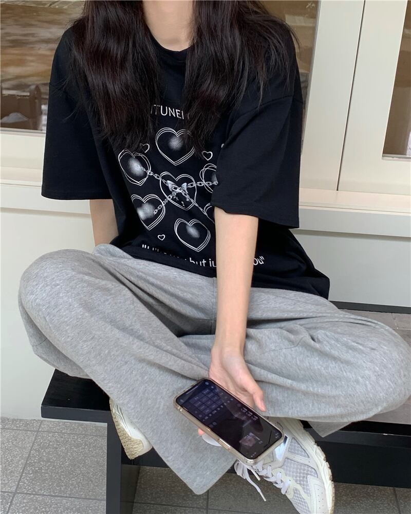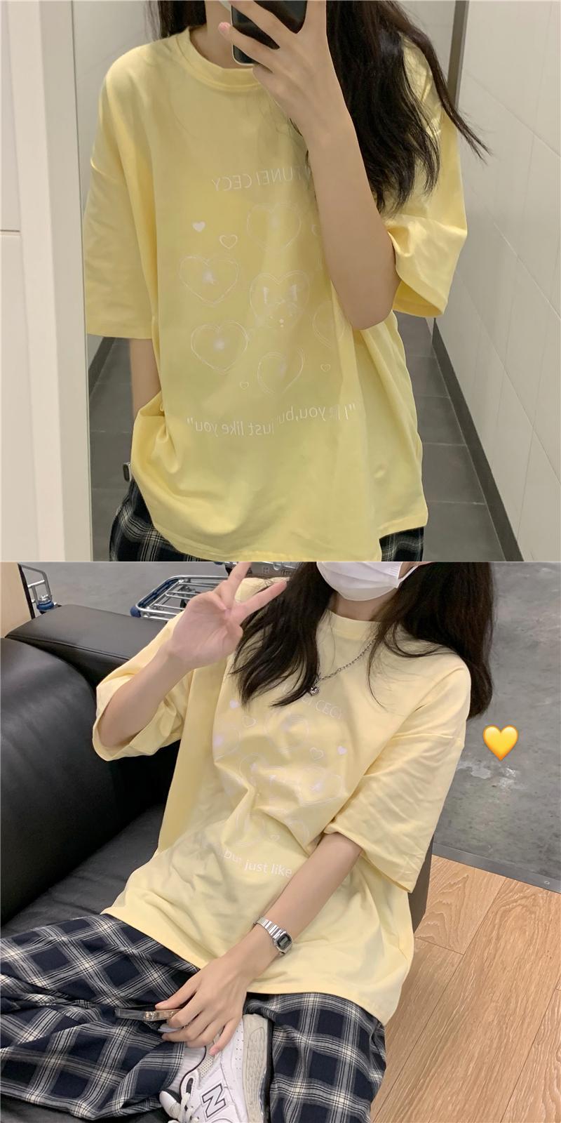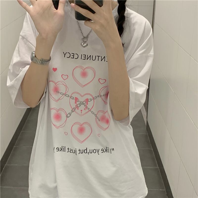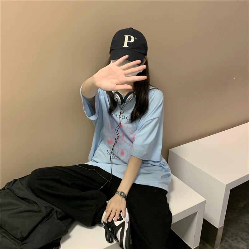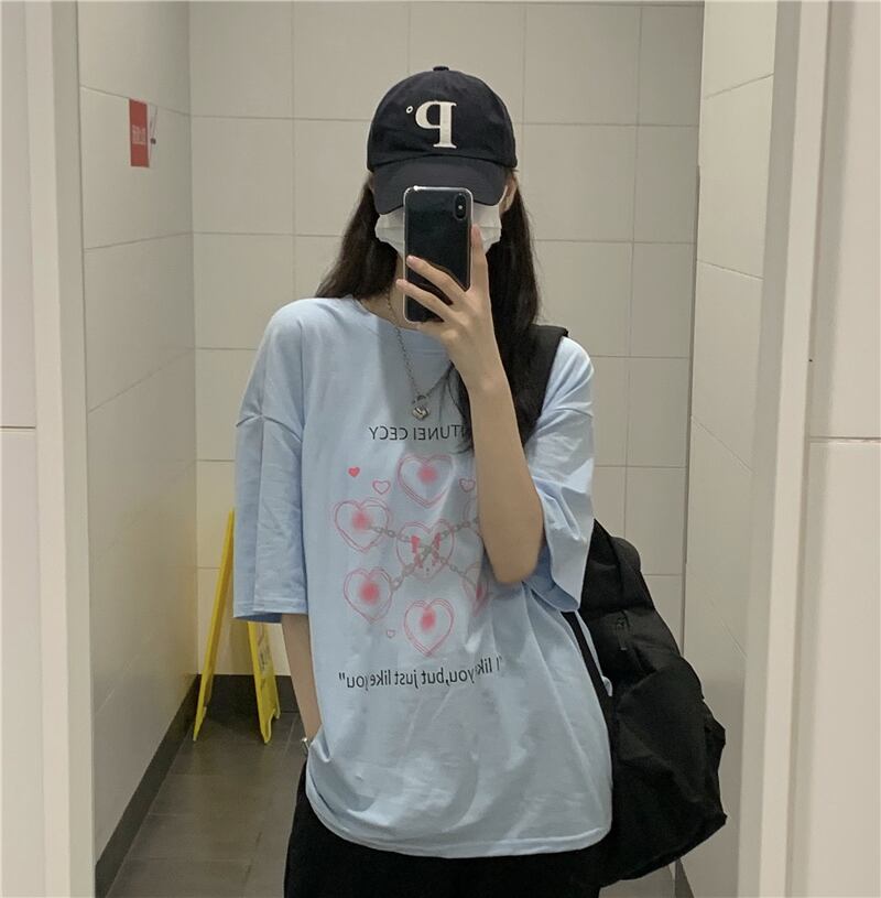 ブルーTシャツ サマープリントカジュアルルーズホワイトトップス 夏物 クレセントシティ80795425463