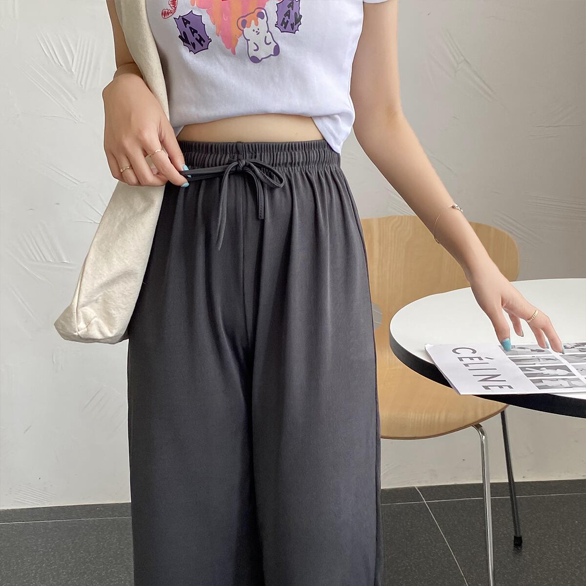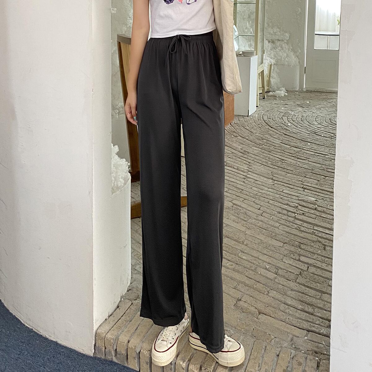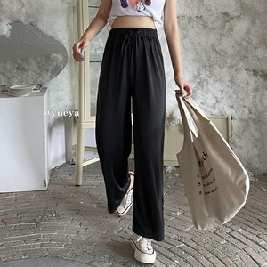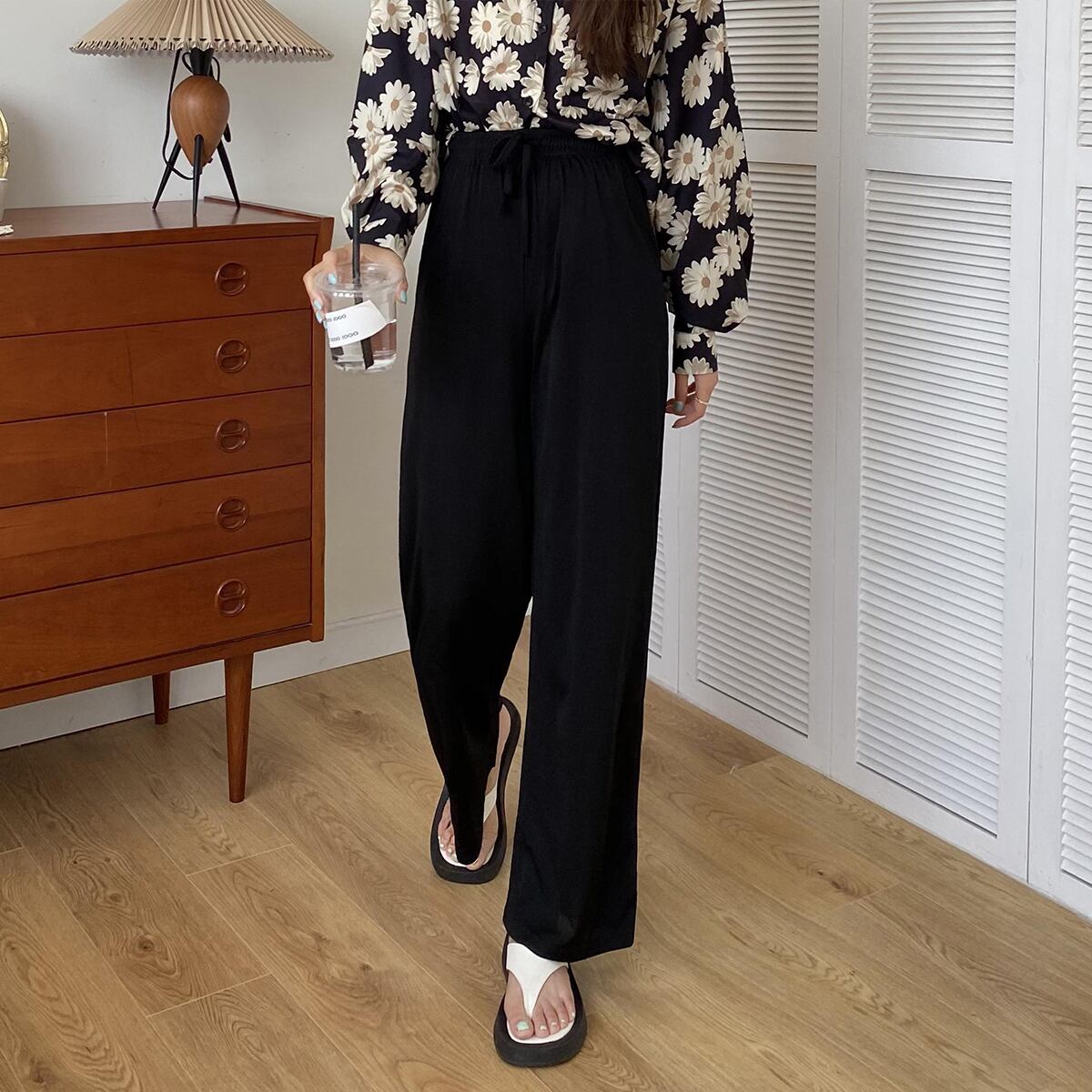 ブラックカジュアルパンツ サマー薄手ルーズハイウェスト 夏物 クレセントシティ45485945089