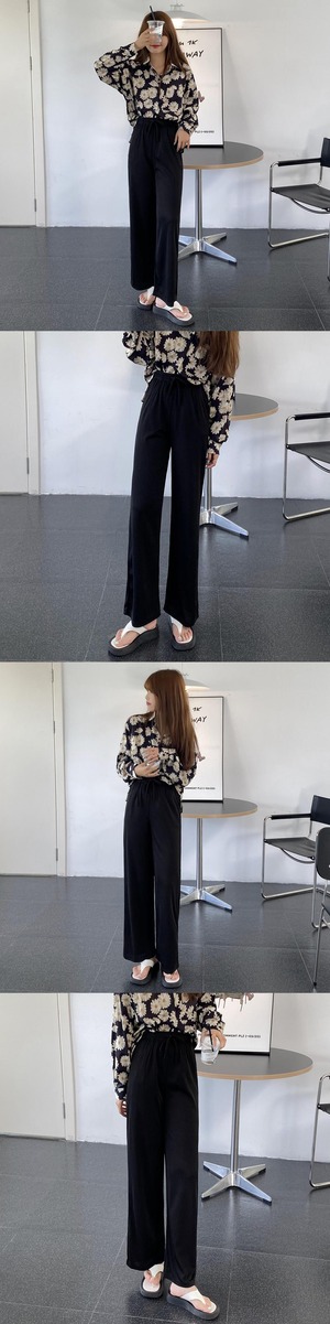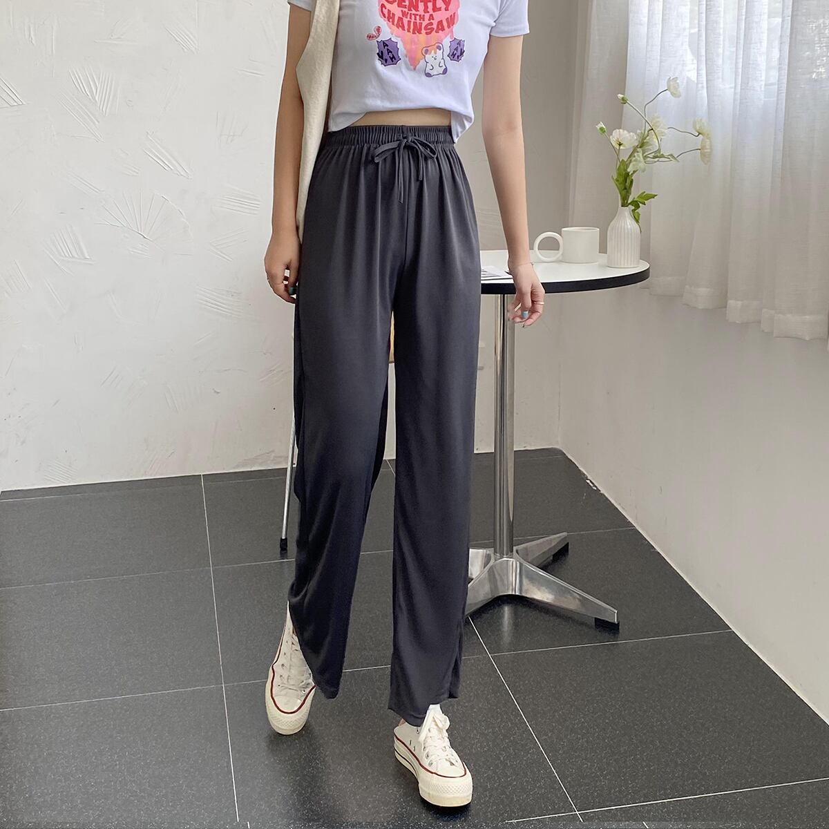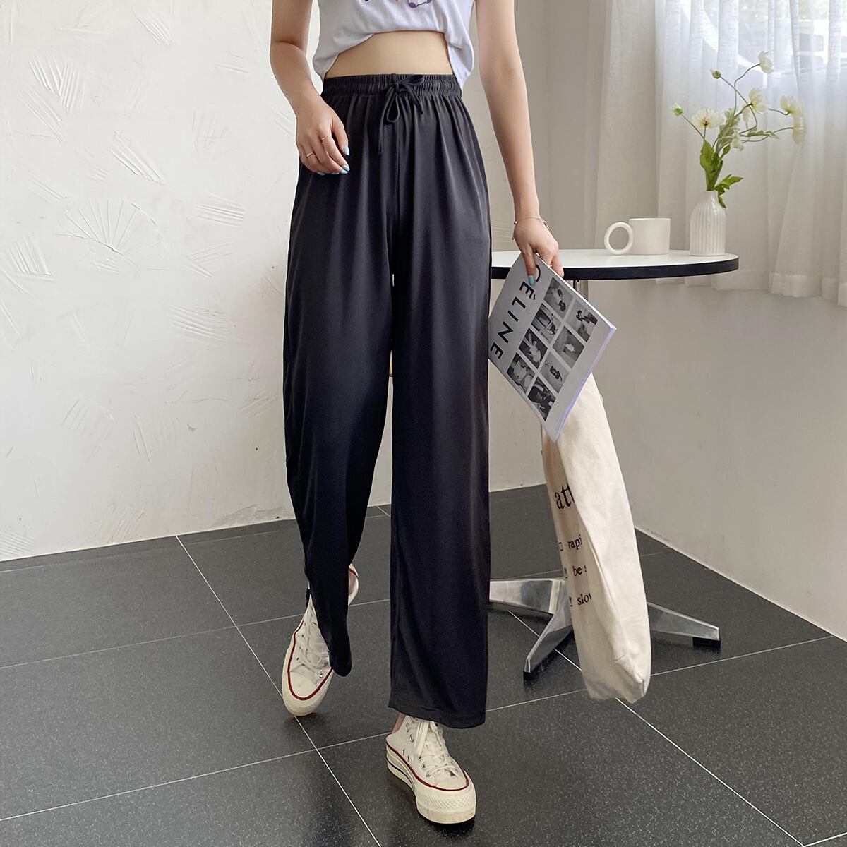 ブラックカジュアルパンツ サマー薄手ルーズハイウェスト 夏物 クレセントシティ45485945089