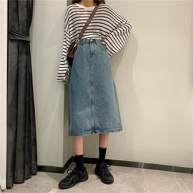 スタンダードスカート サマーハイウェストウェストAラインロング薄手 レトロ 夏物 クレセントシティ86935524302