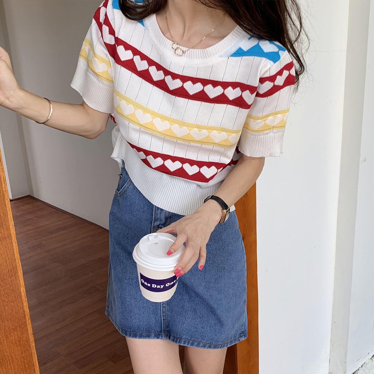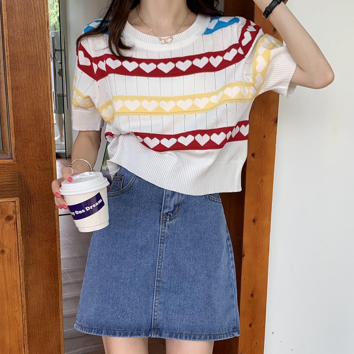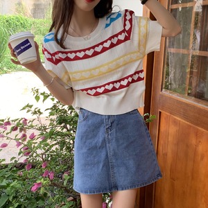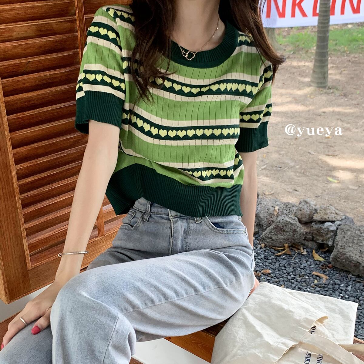 ニット レディースサマーTシャツ ジャカードルーズ薄手トップス 夏物 クレセントシティ2628497394