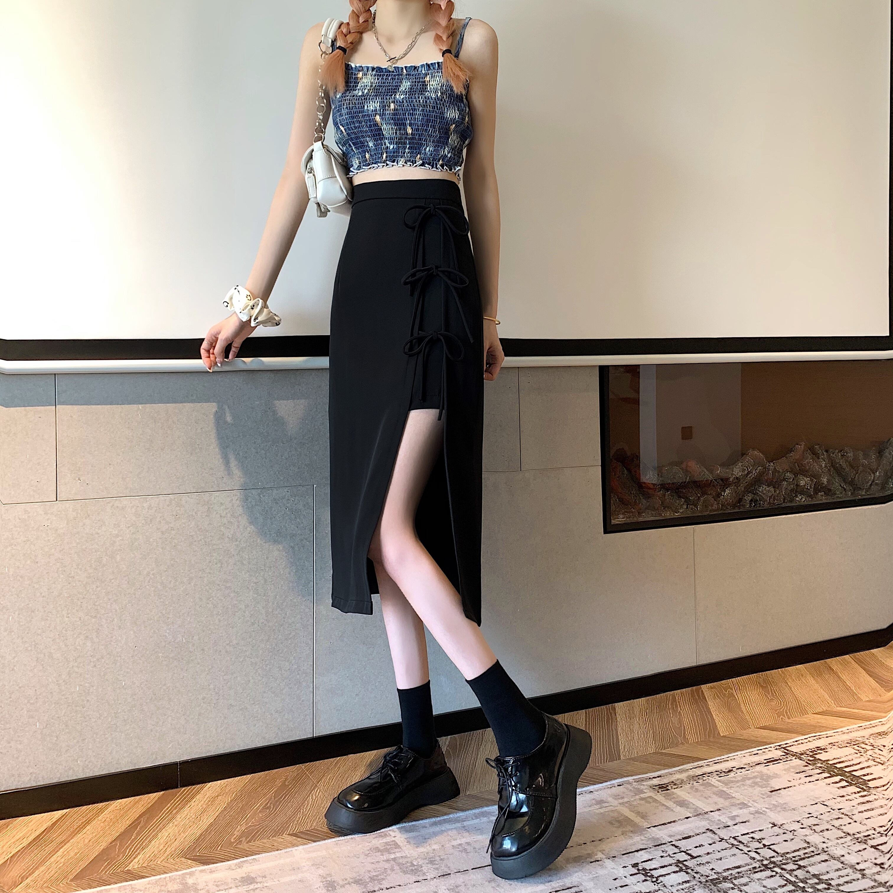 カラースカート サマースタイルスリットハイウェストウェストロング 夏物 クレセントシティ61718079288
