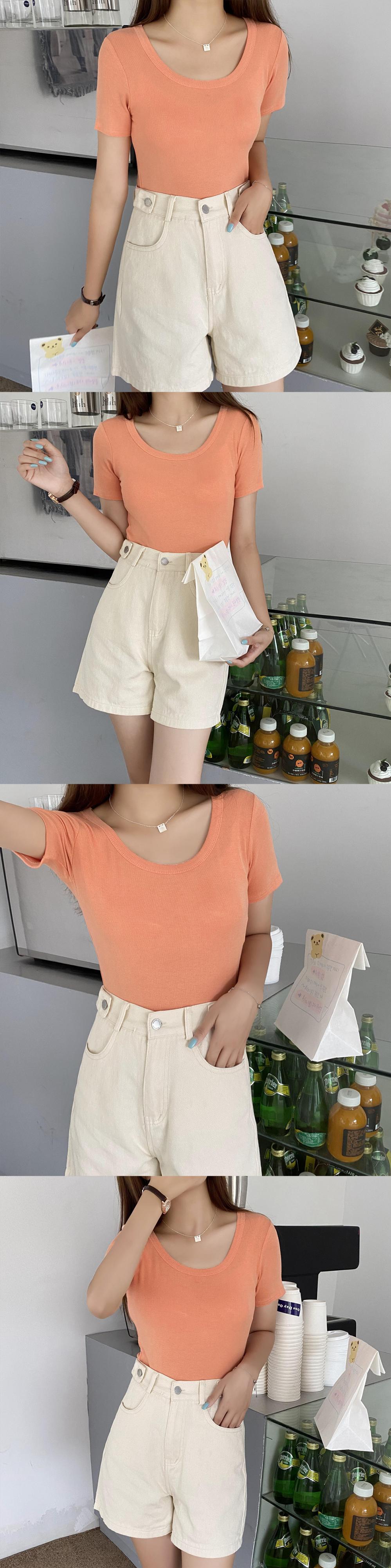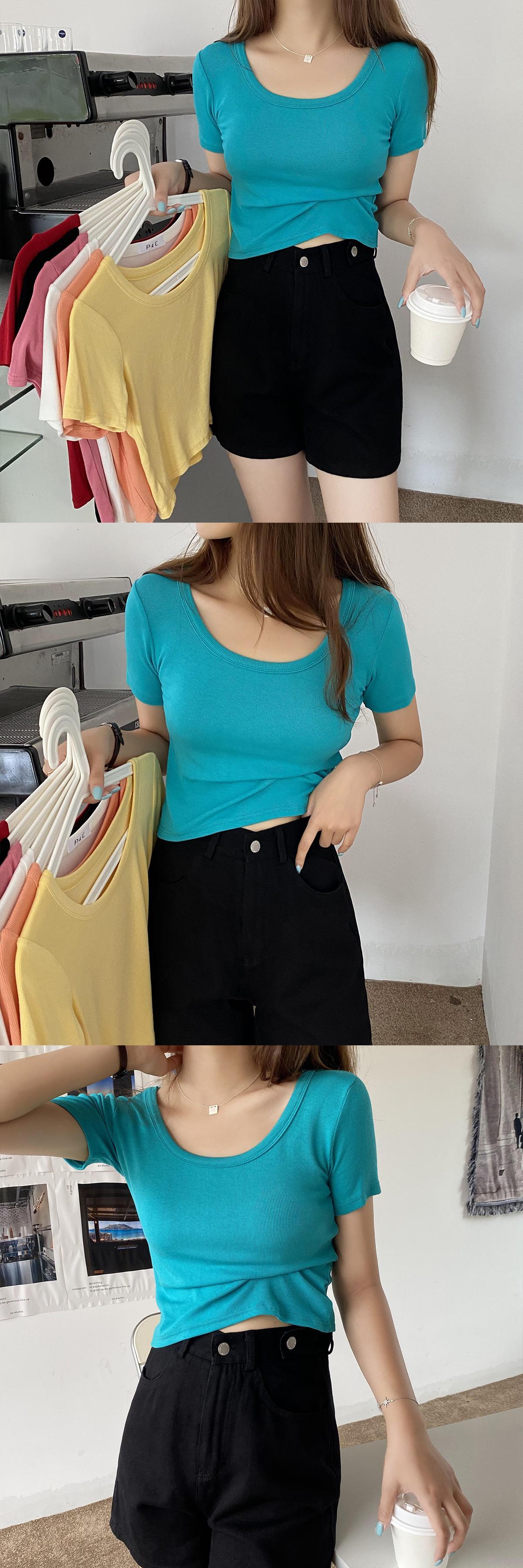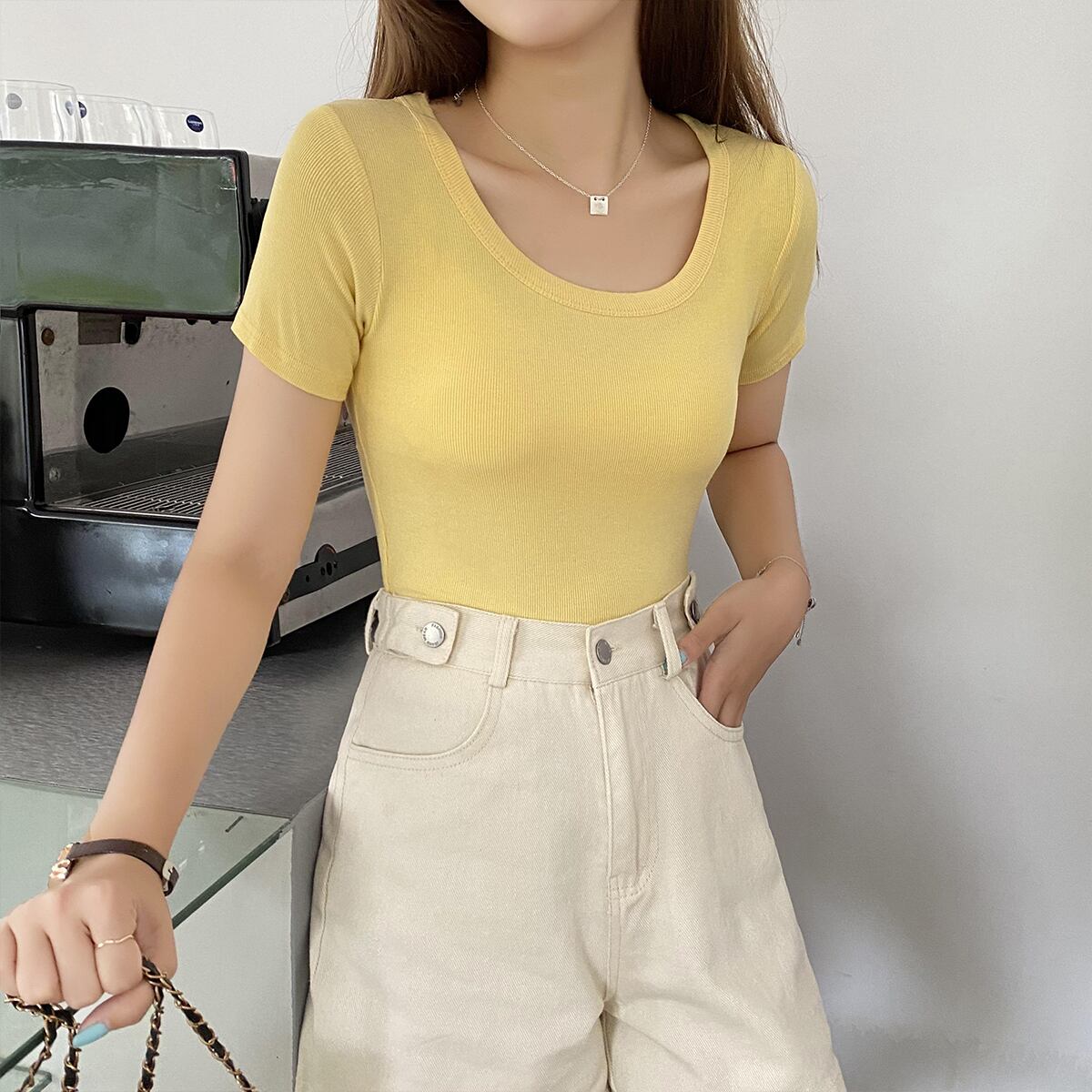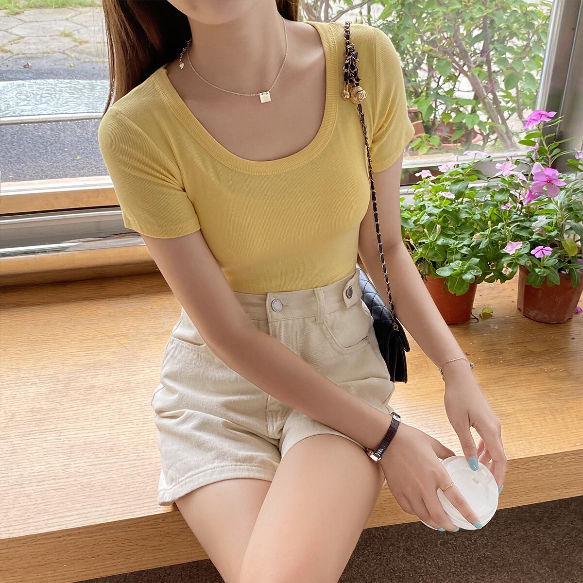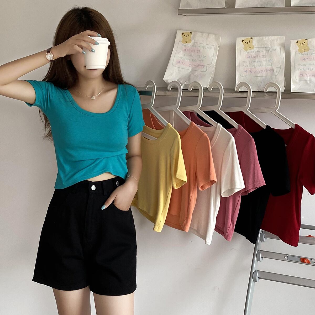 ショートTシャツ サマースリム薄手ソリッド カラートップス 夏物 ソリッドカラー クレセントシティ85284434991