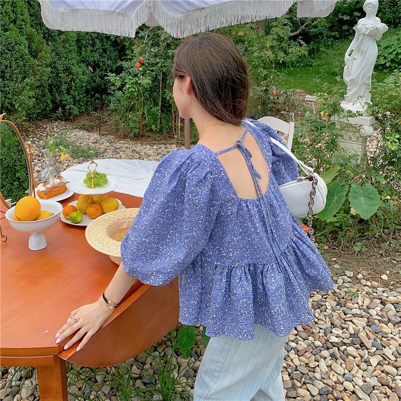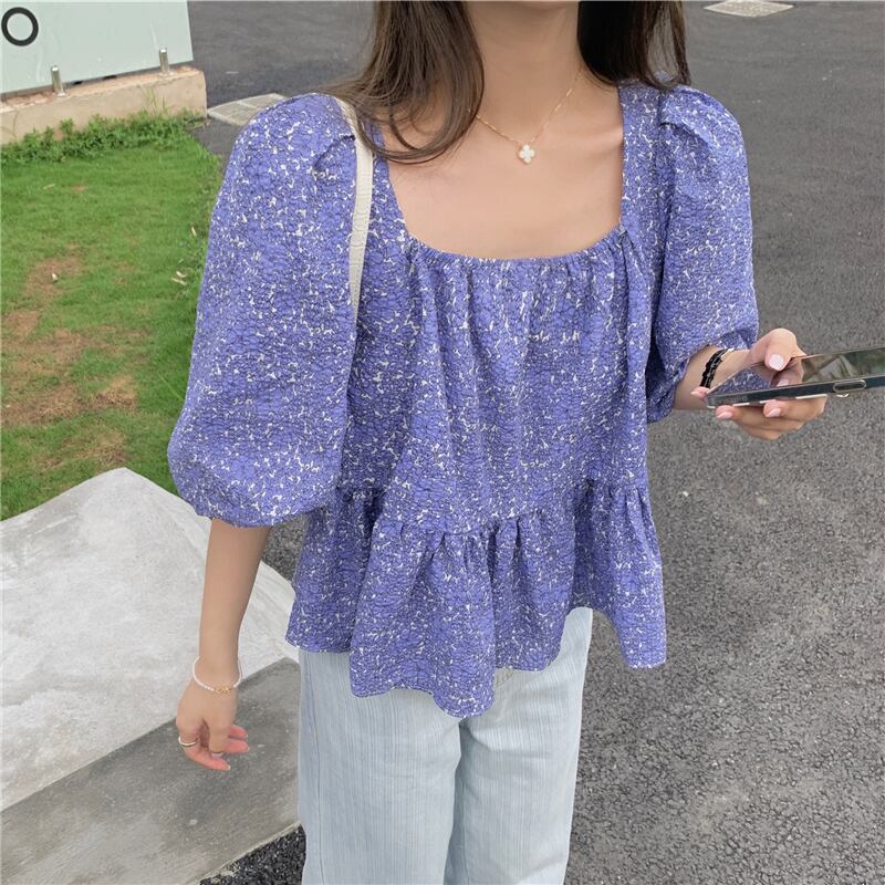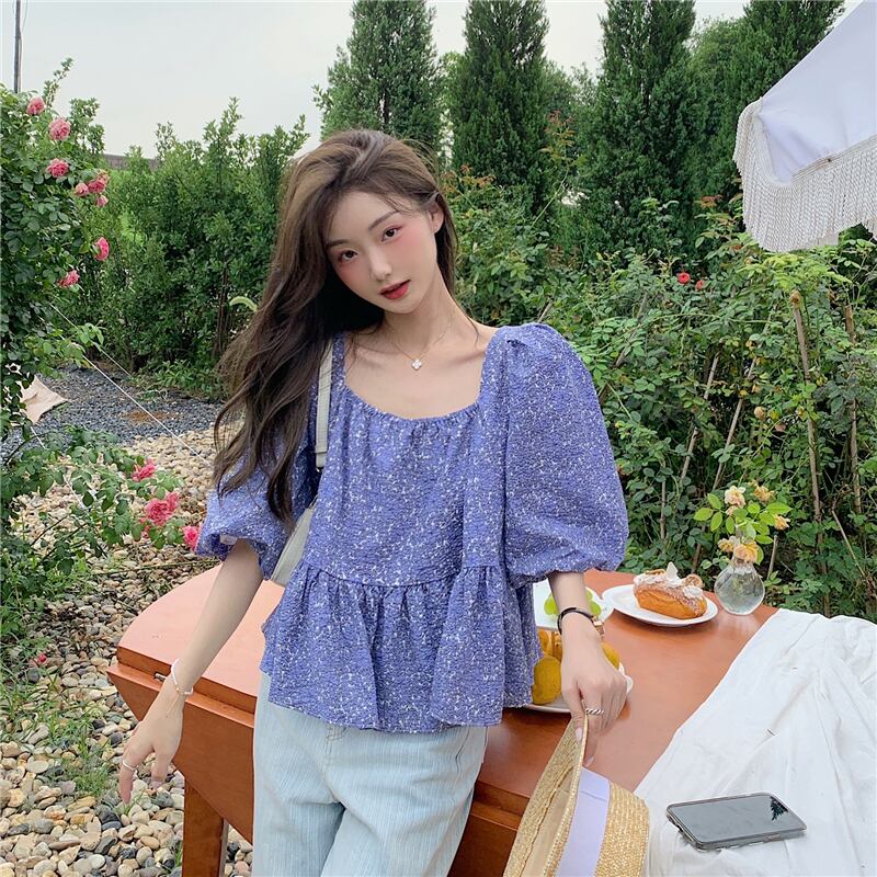 スリーブフローラルシャツ サマーカラー薄手ルーズトップス 大人ガーリー スウィート キュート カジュアル 夏物 花柄 スクウェア クレセントシティ79620272138