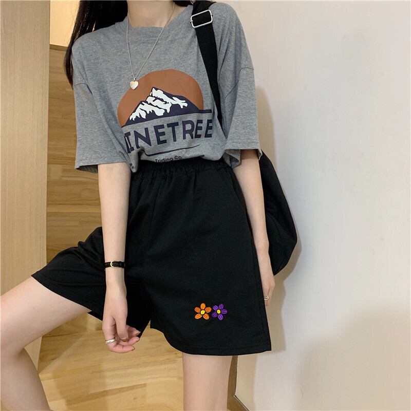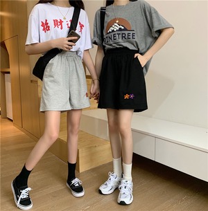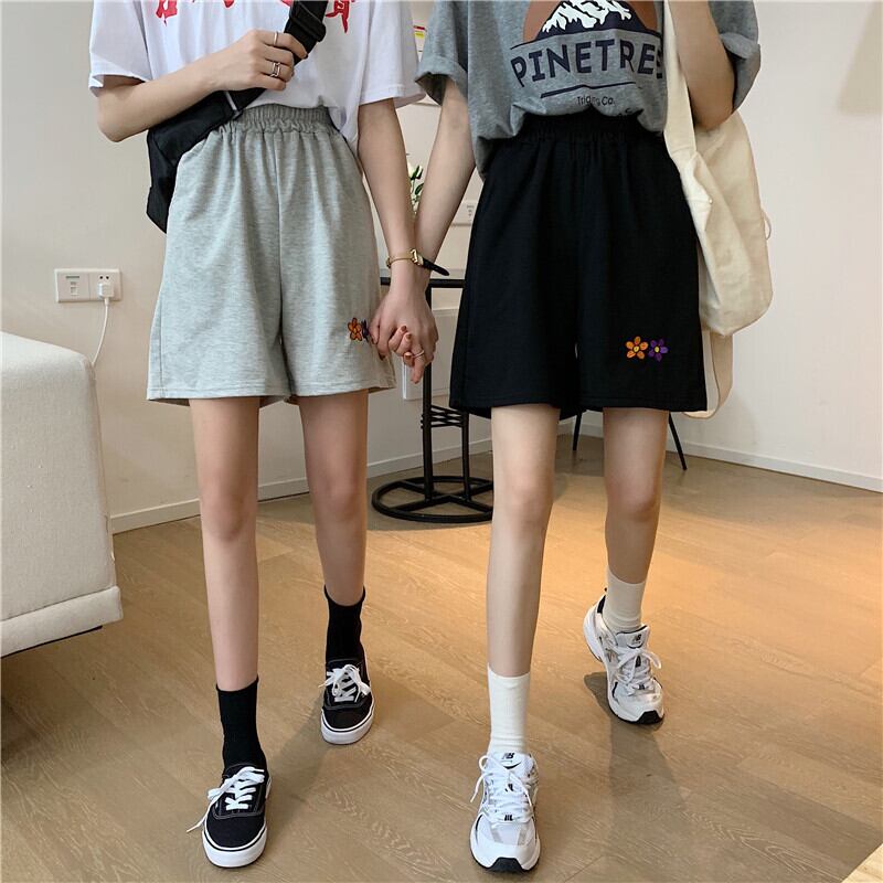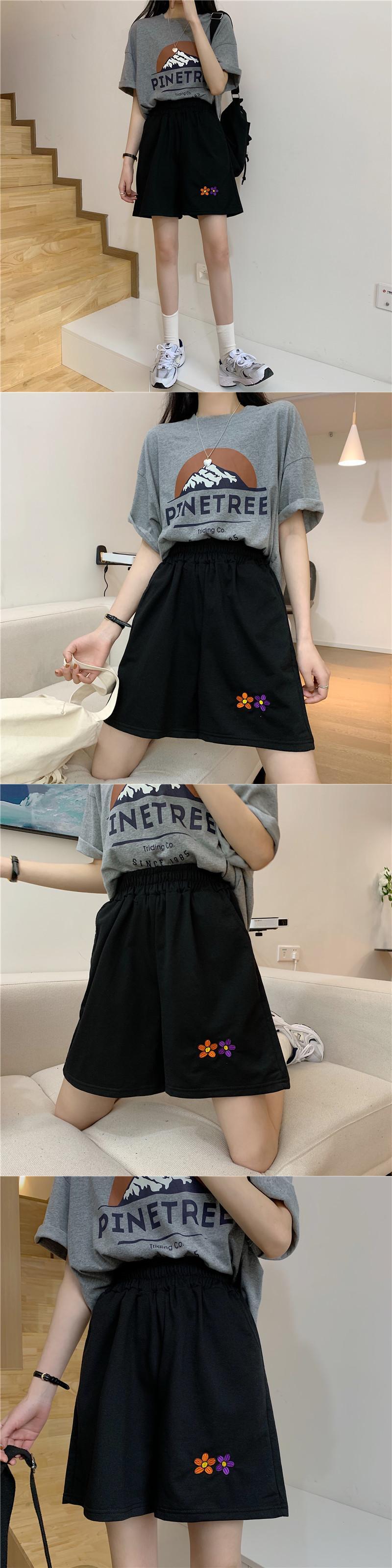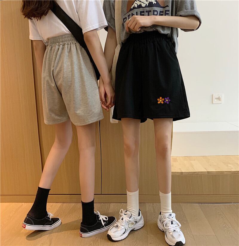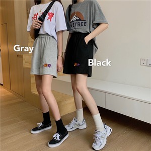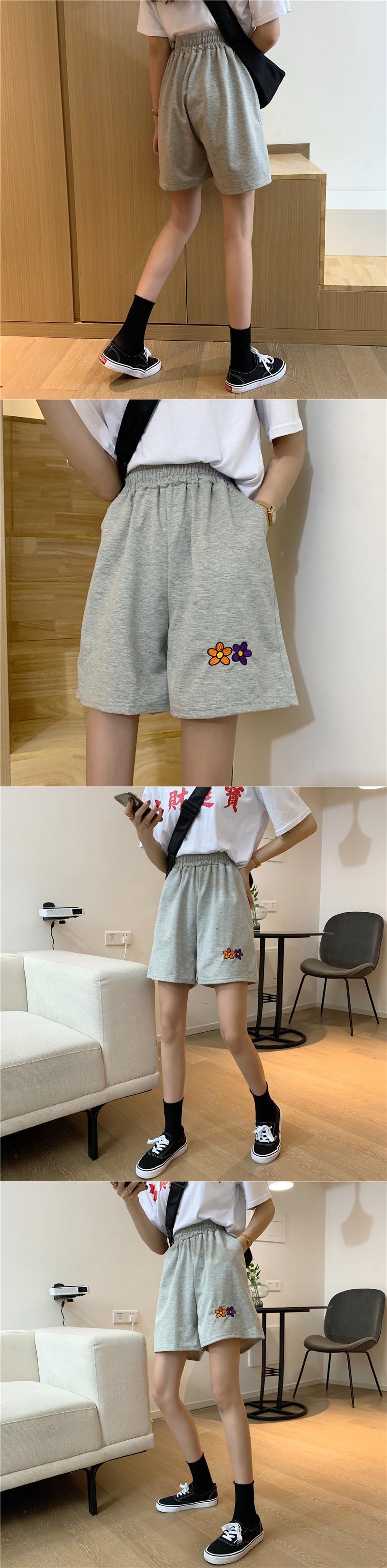 カジュアルパンツ サマーFlowerデザイン 刺繍薄手ハイウェストショーツ 夏物 ブルマー フラワーデザイン クレセントシティ66801639259