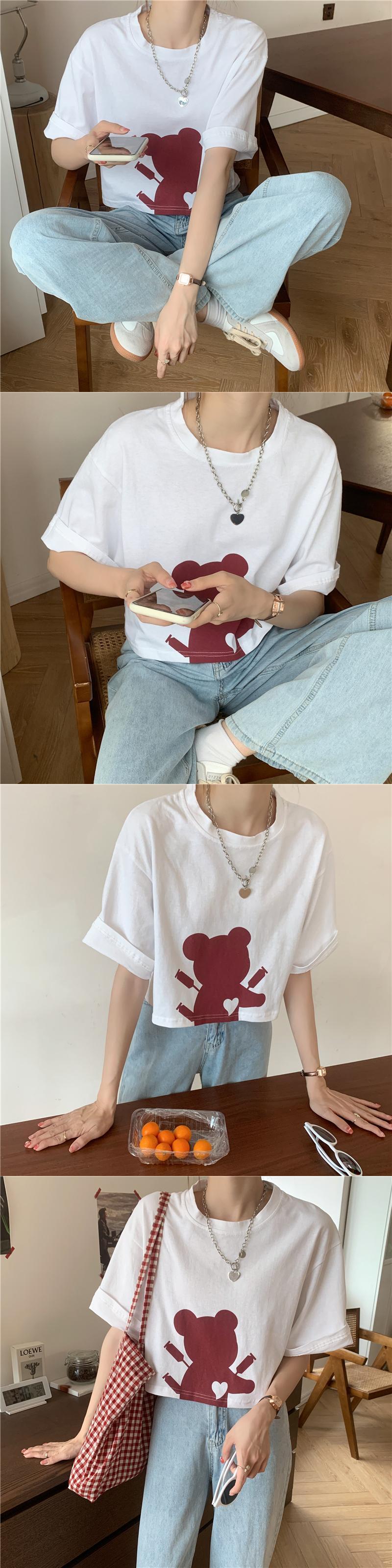 Tシャツ サマープリントルーズカジュアルホワイトトップス 夏物 クレセントシティ28112888236