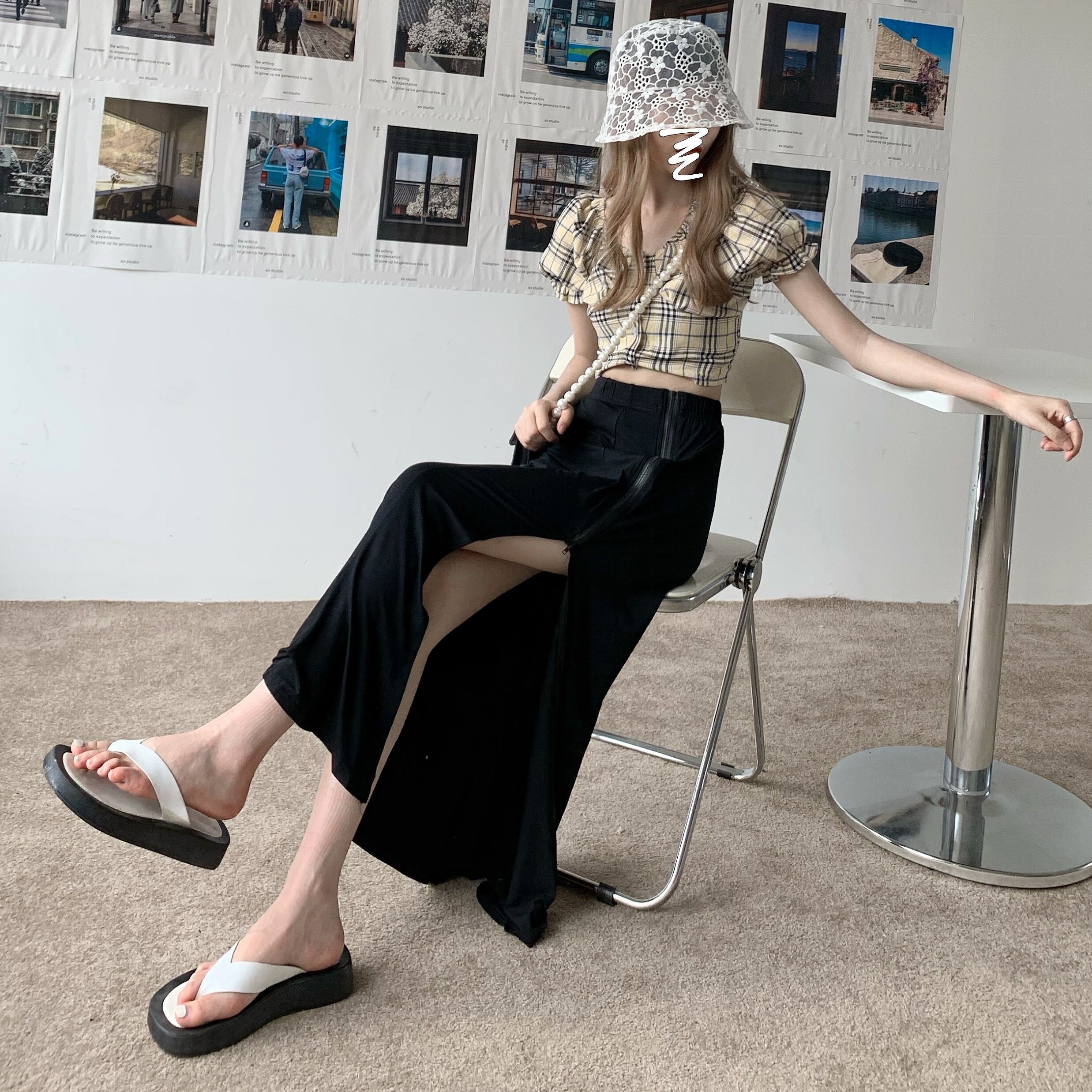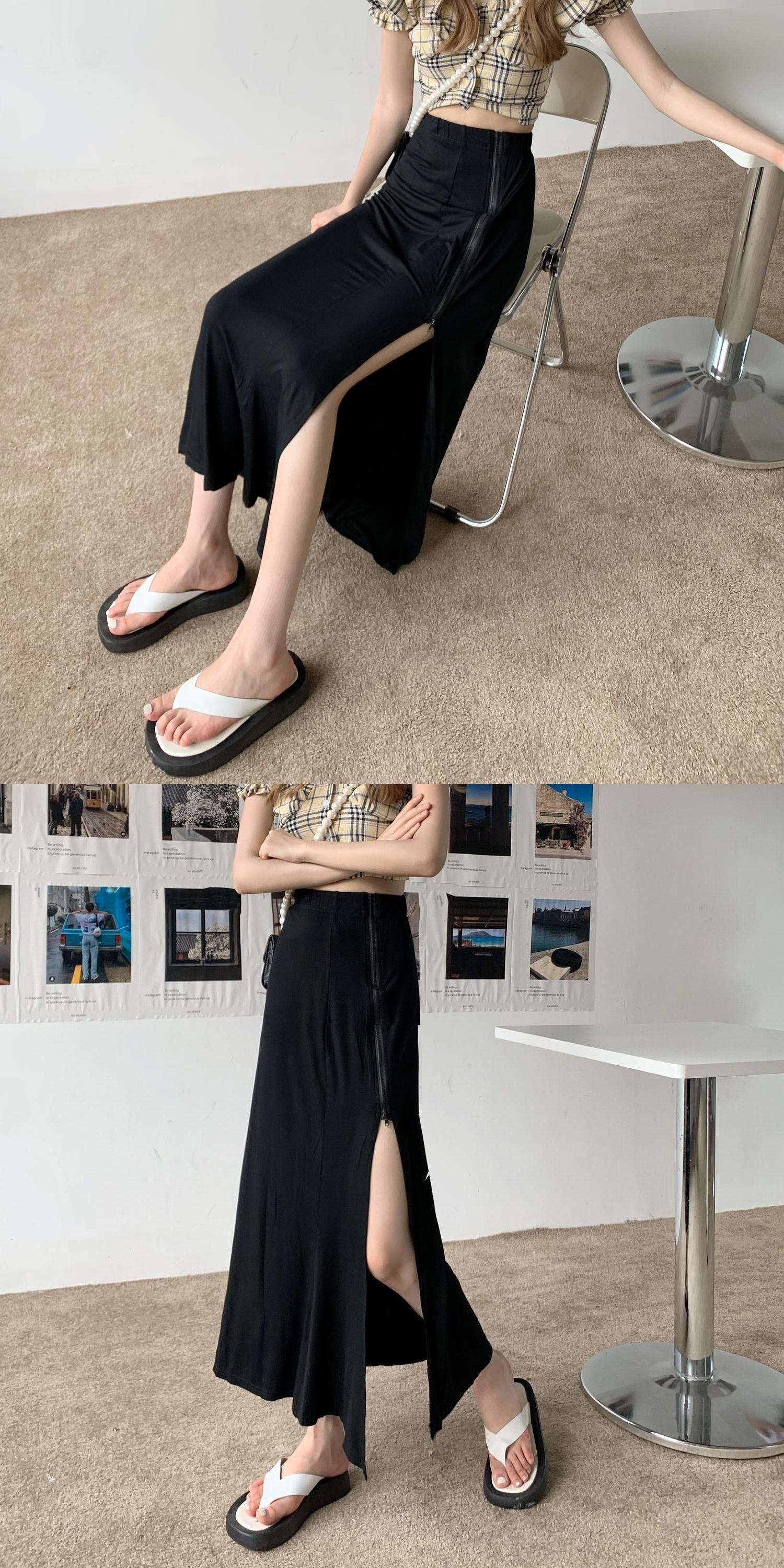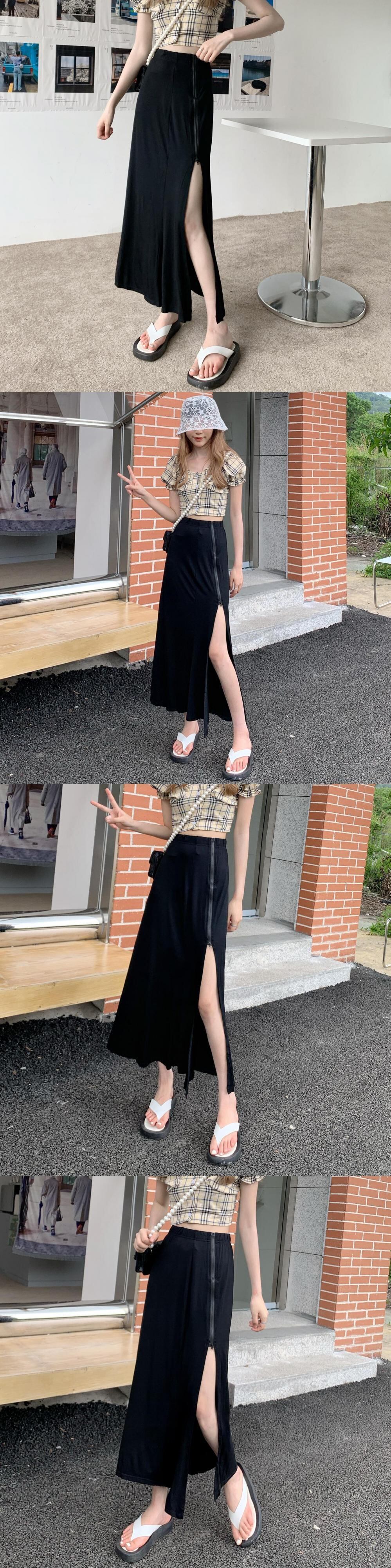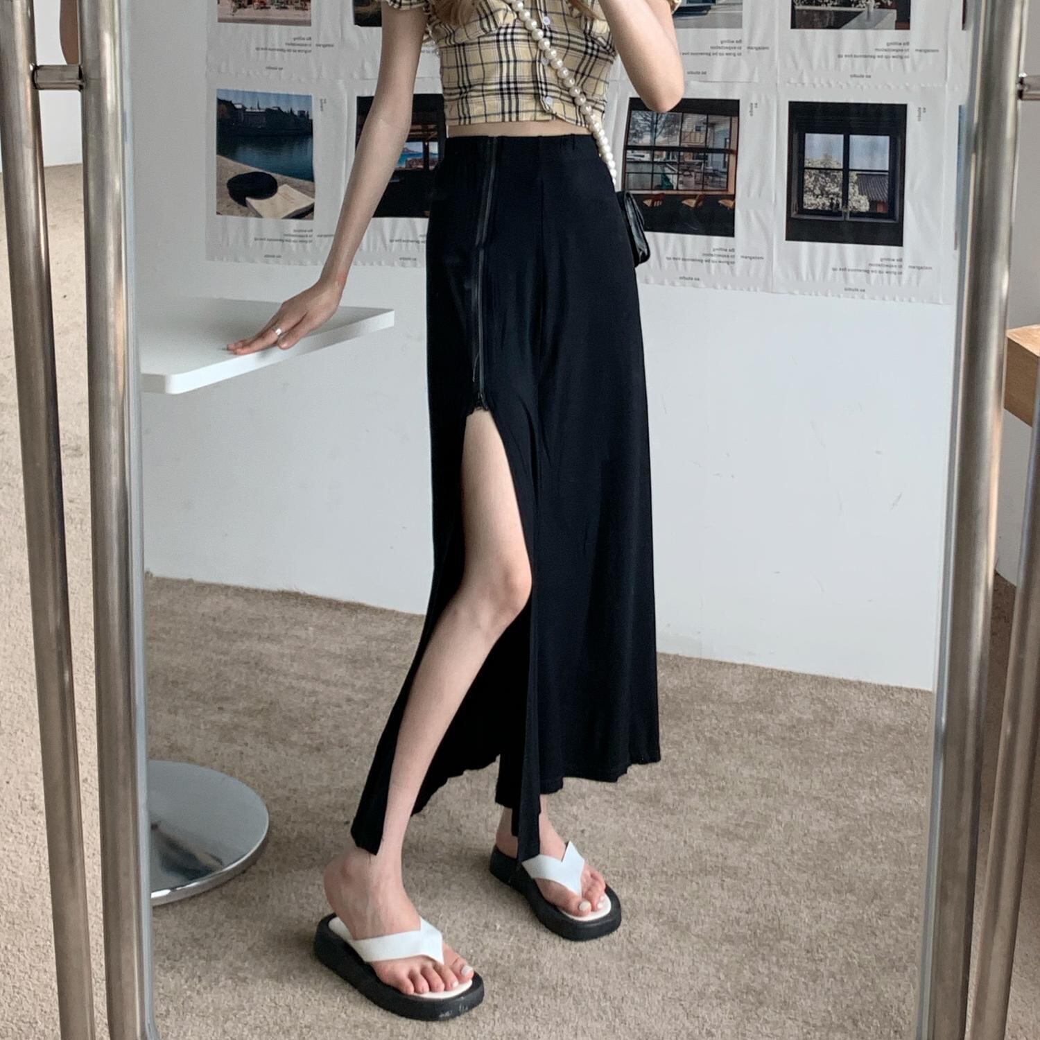 ブラックスリットスカート サマーロングAライン ハイウェスト 夏物 クレセントシティ73057015049