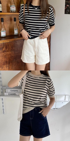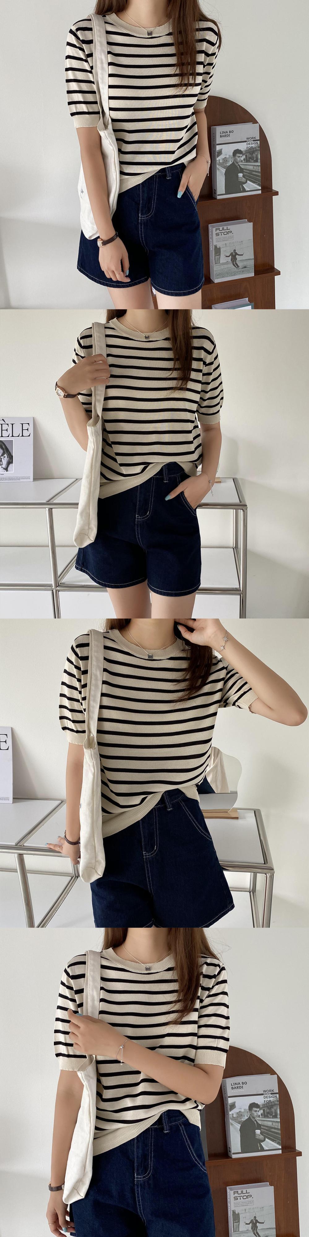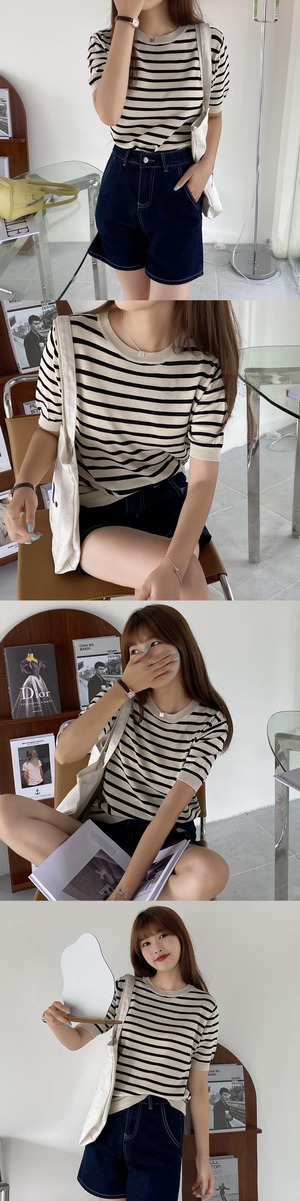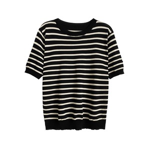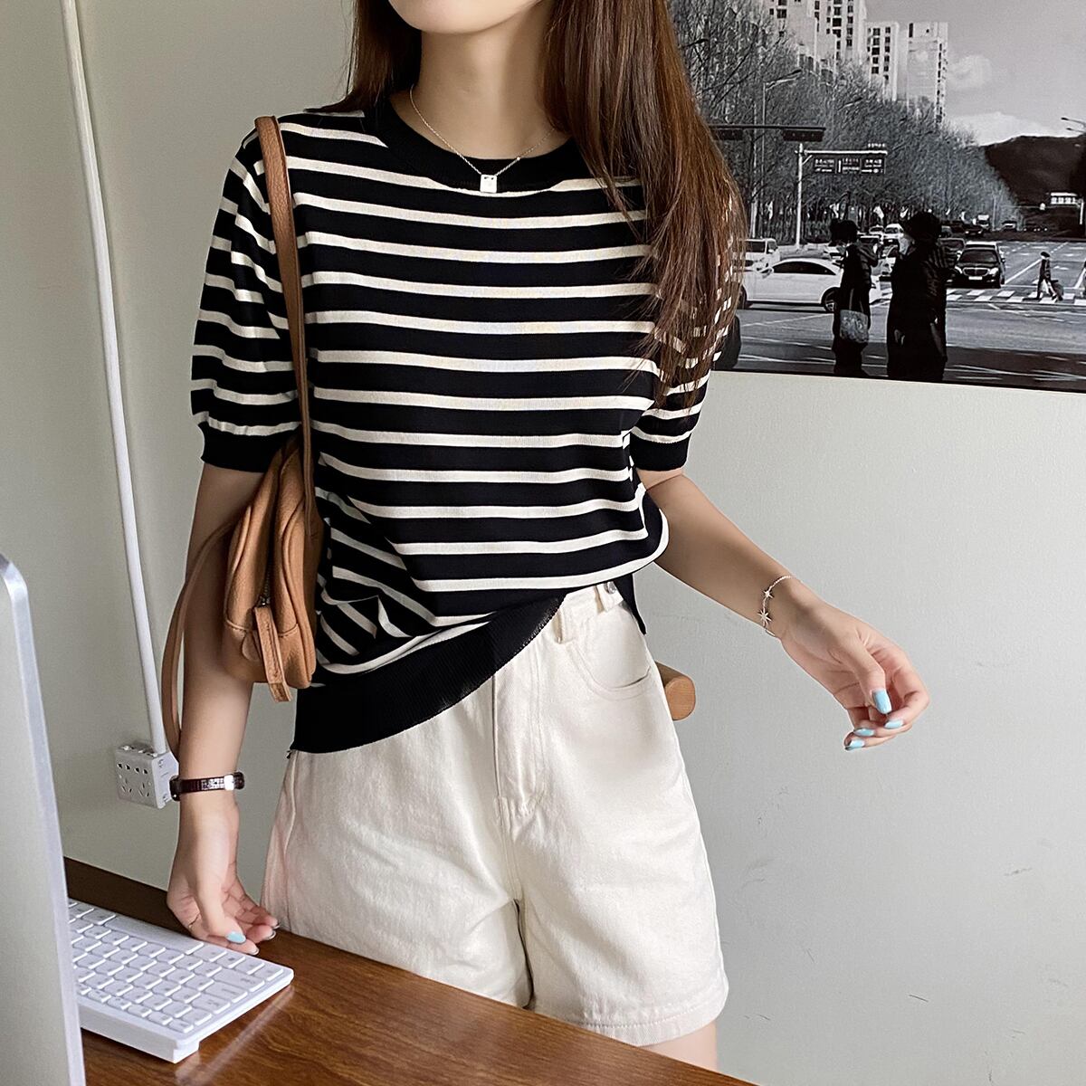 ストライプTシャツ サマールーズ薄手ニット 半袖スリーブトップス ショート ハーフスリーブ 夏物 シルク クレセントシティ6876886330