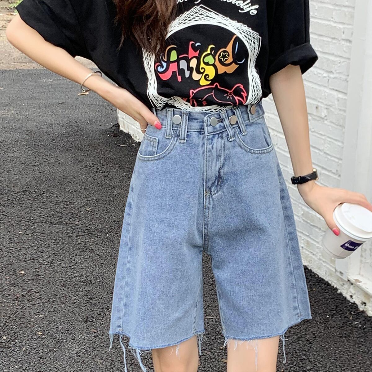 ジーンズ サマー薄手ルーズパンツ ウェストワイドレッグショーツ 夏物 ブルマー ワイドパンツ クレセントシティ62138813667