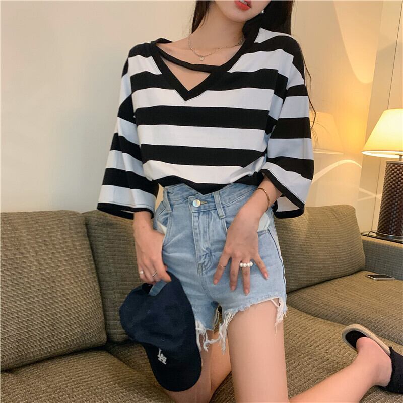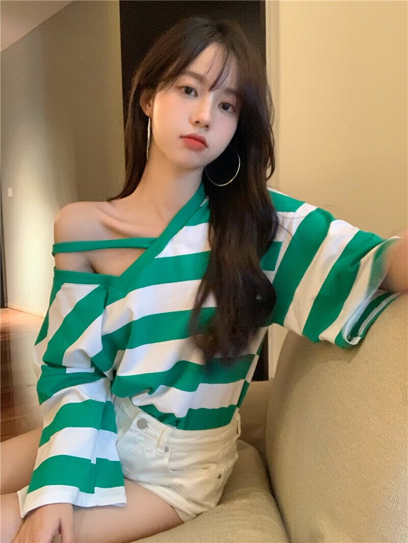ストライプTシャツ サマールーズ薄手トップス 夏物 クレセントシティ30433076891