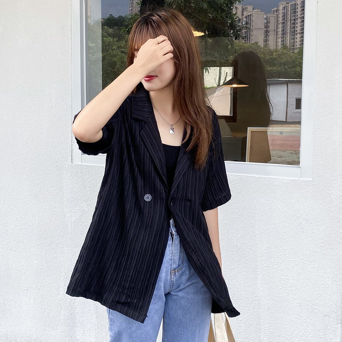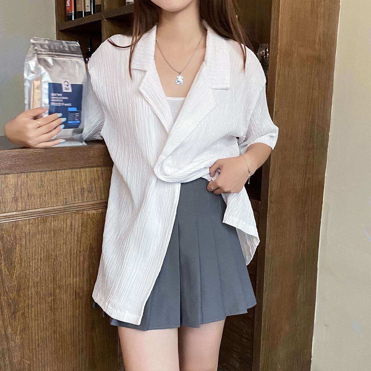 ホワイトシャツ サマールーズカジュアル薄手 夏物 クレセントシティ687199382