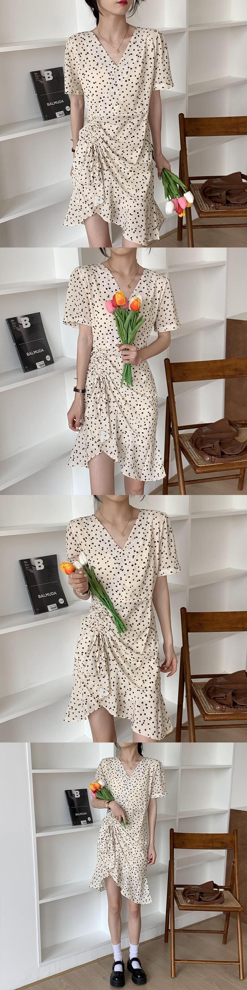 Vネックドレス サマーギャザーウェストAラインフローラルスカート 夏物 花柄 クレセントシティ85175915058