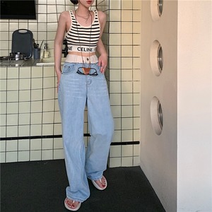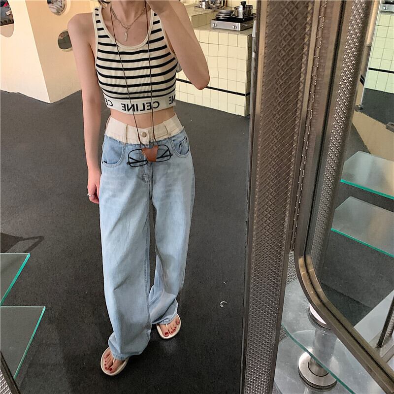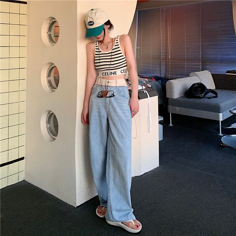 ルーズ薄手サマーハイウェストウェストジーンズ 夏物 ステッチ クレセントシティ18351919686