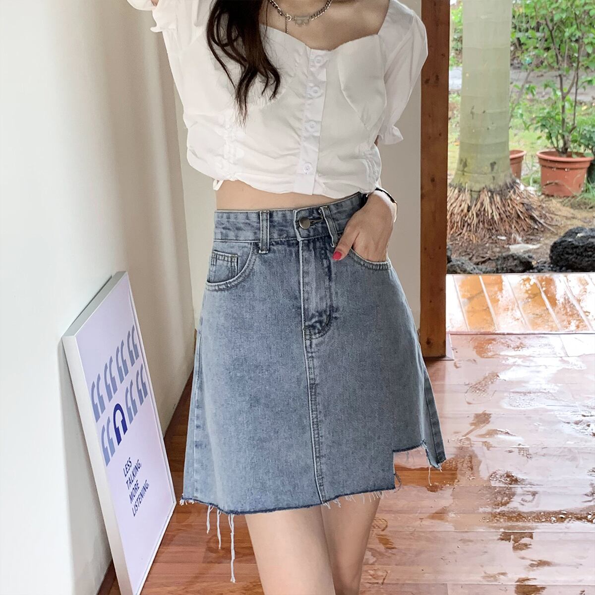 スカート サマーハイウェストウェスト薄手Aライン 夏物 クレセントシティ7984722463