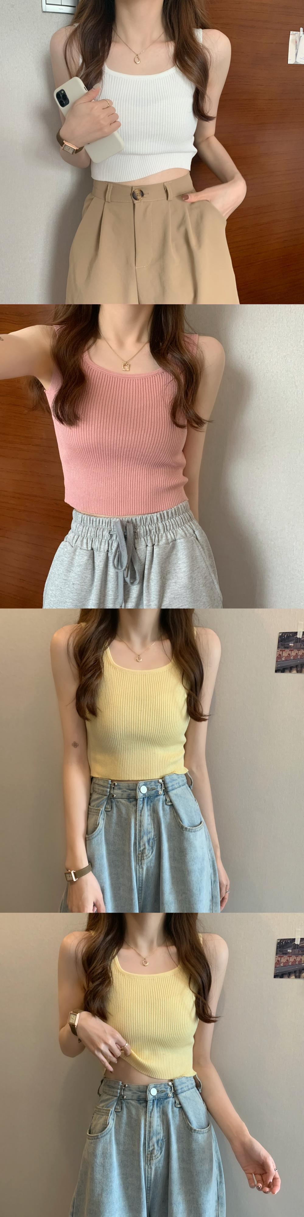 サマースリム薄手バックニットシャツ ノースリーブトップス 夏物 クレセントシティ70725474173