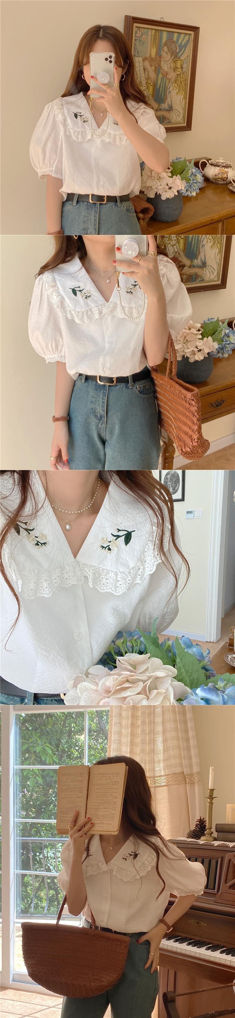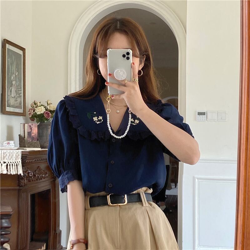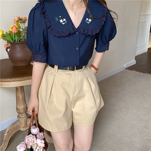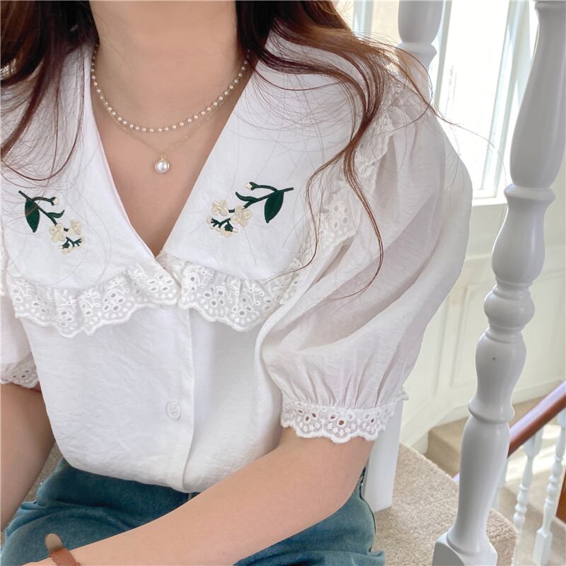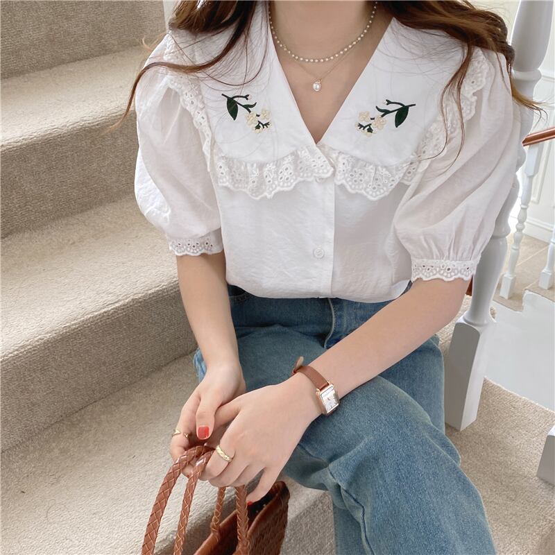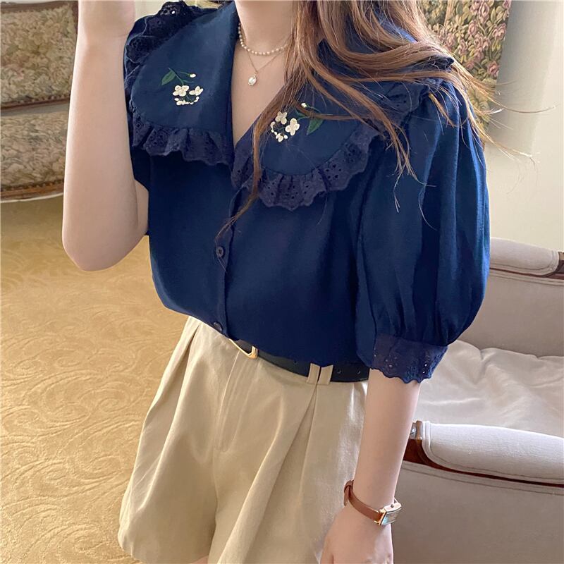 スタンダードシャツ サマー刺繍ルーズ薄手 レトロ 夏物 クレセントシティ20585745945