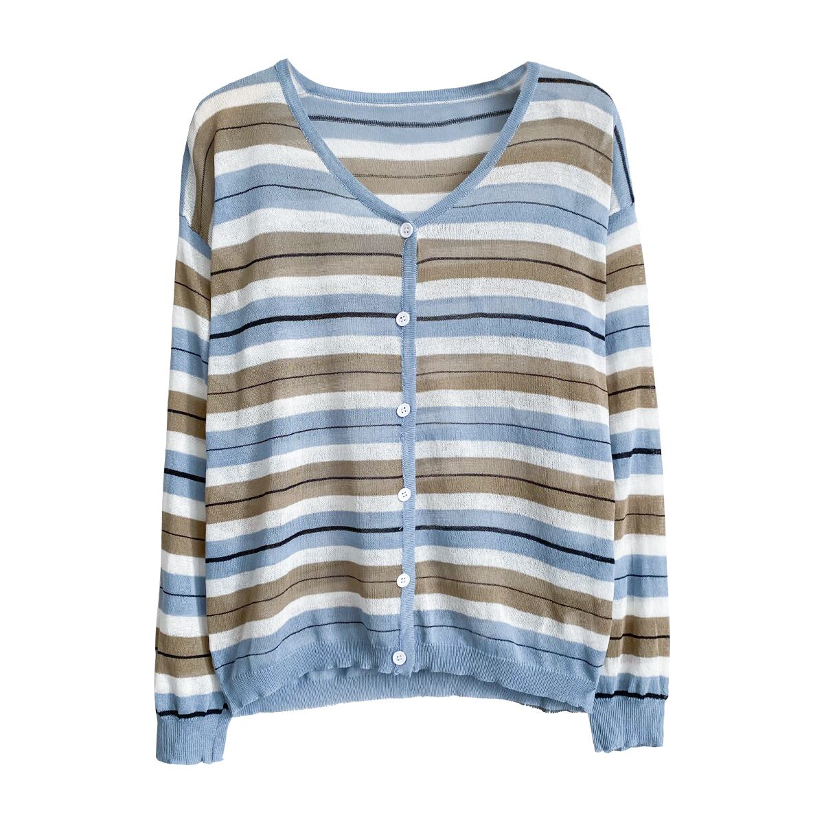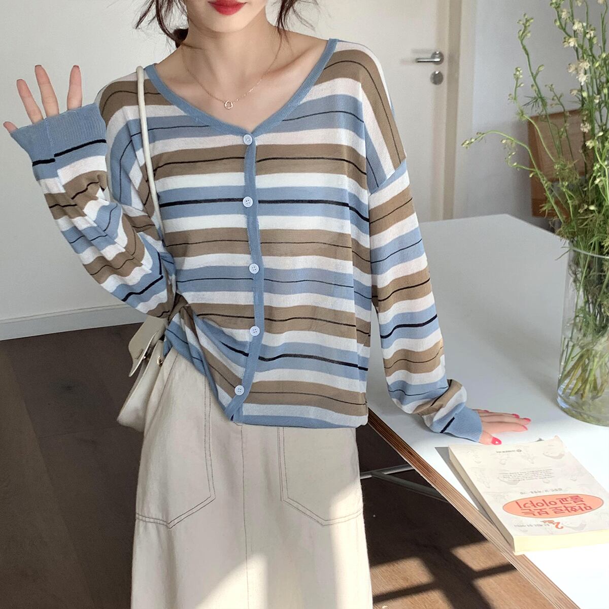 ストライプ長袖スリーブTシャツ サマールーズ薄手カーディガンジャケット ロング 夏物 クレセントシティ18821899043