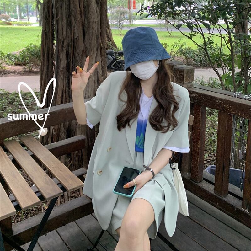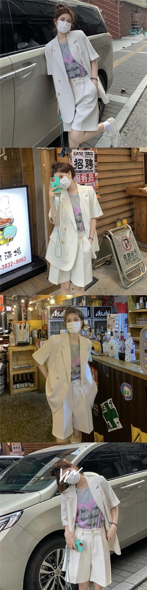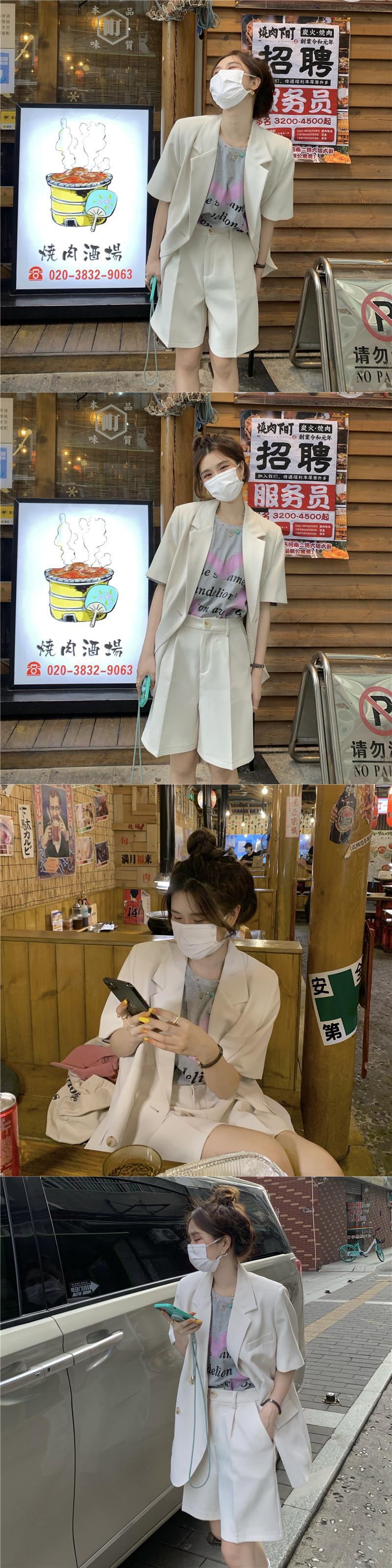 薄手ソリッド カラージャケット ルーズハイウェストウェストショーツ ブルマー ソリッドカラー クレセントシティ58040141589