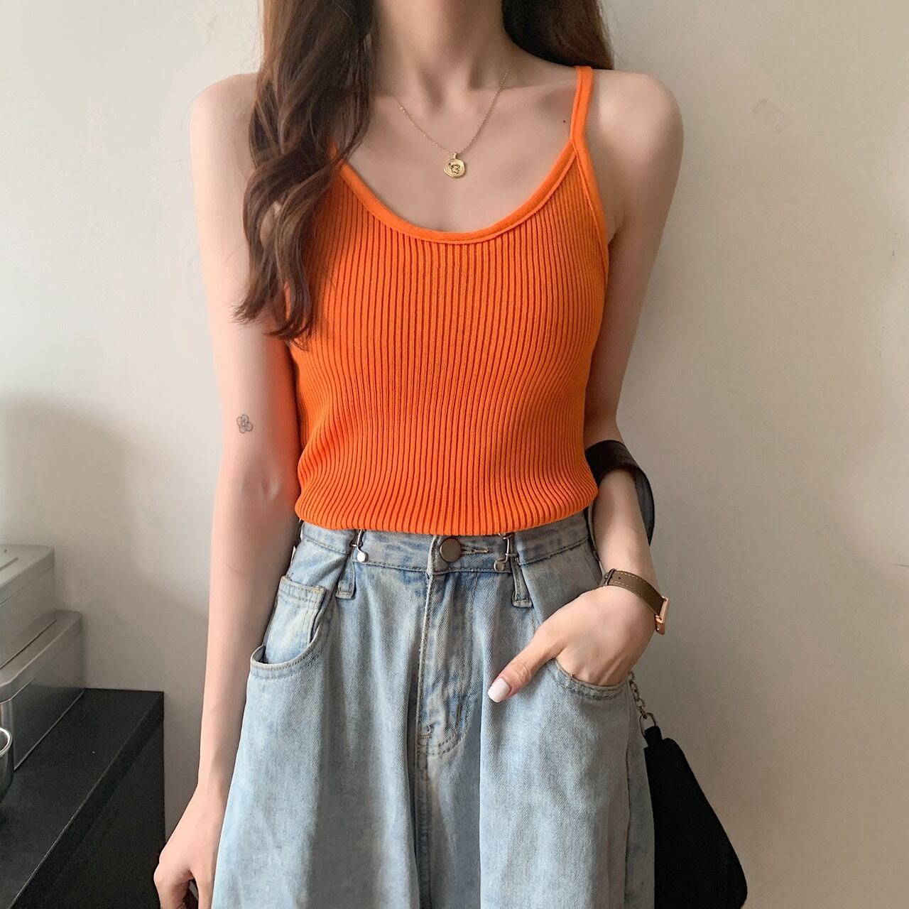 サマーソリッド カラーニットトップス 夏物 ソリッドカラー クレセントシティ45208788537