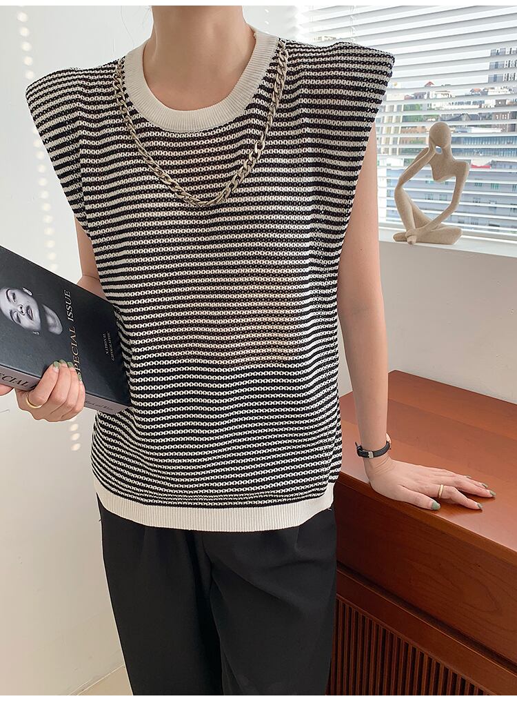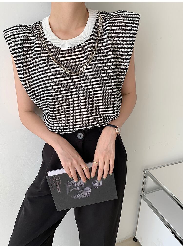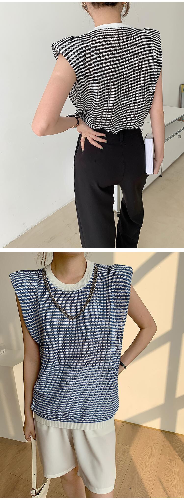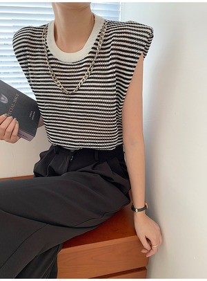 ストライプノースリーブTシャツ サマールーズ薄手セーター トップス 夏物 クレセントシティ90968904531