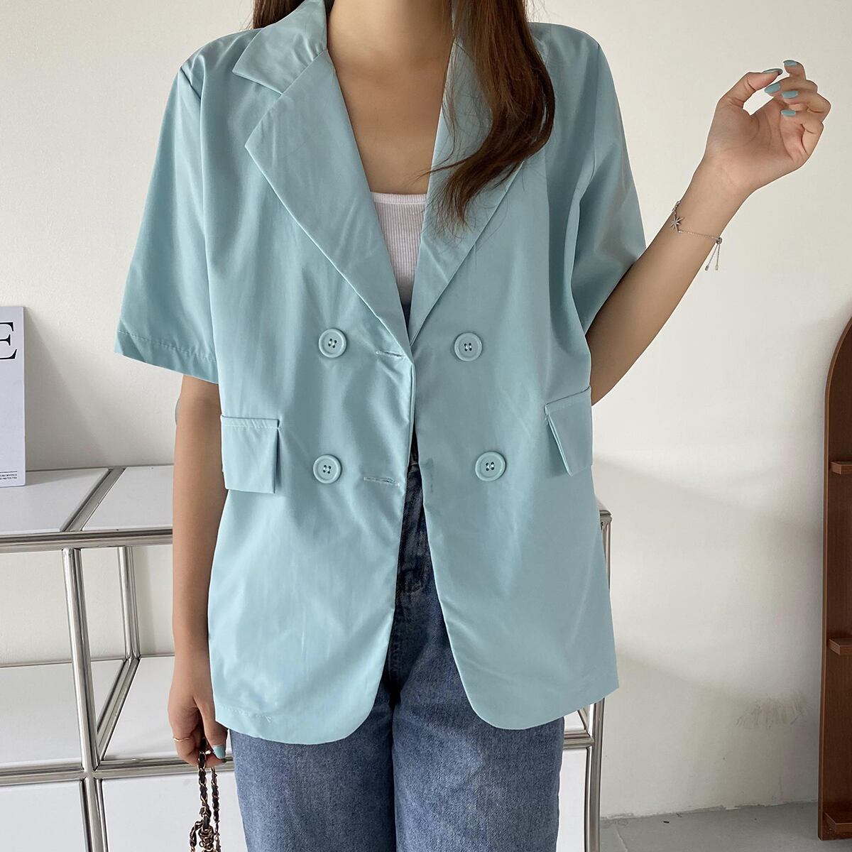 カラー半袖スリーブジャケット レディースサマースリットルーズ薄手トップス ショート ハーフスリーブ 夏物 ピュア クレセントシティ53243120601