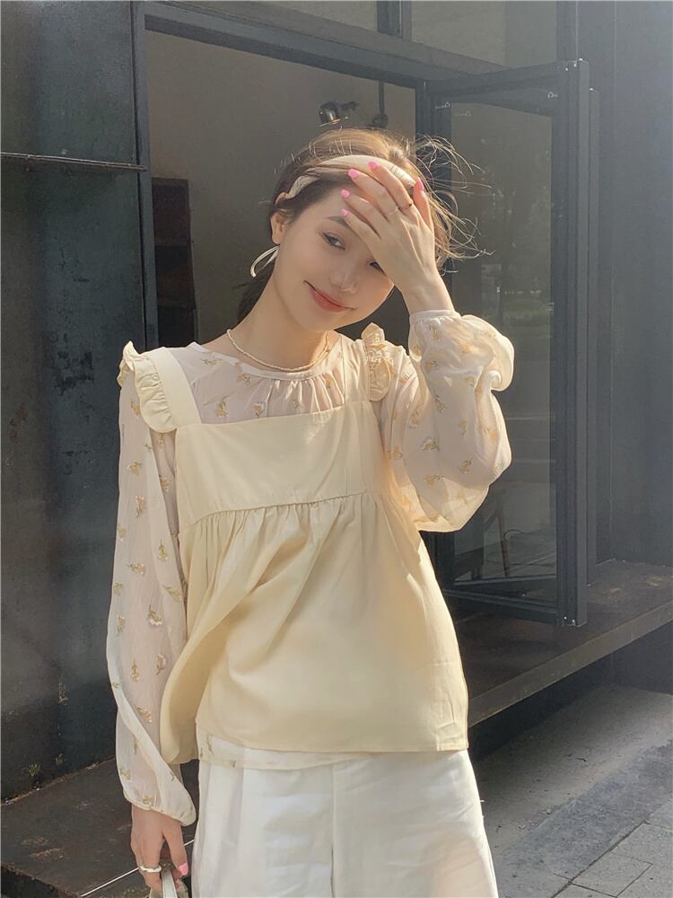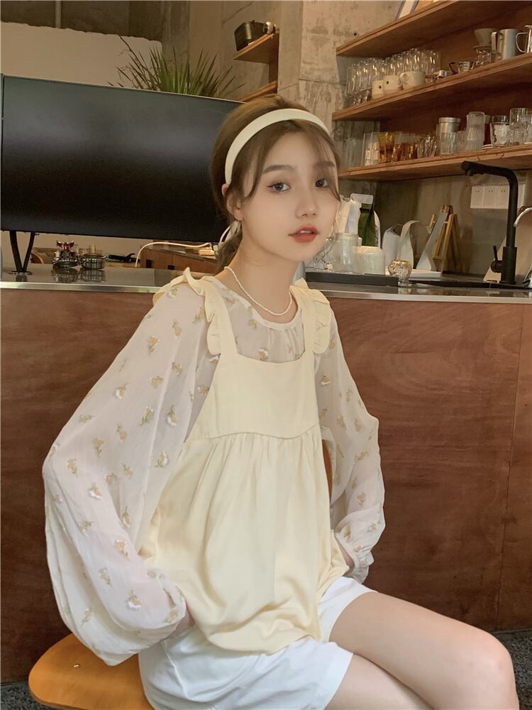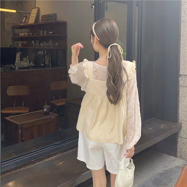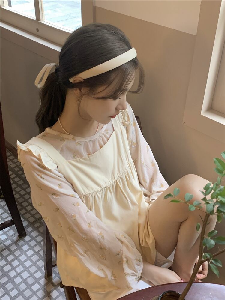色:花柄長袖,アプリコットベスト
