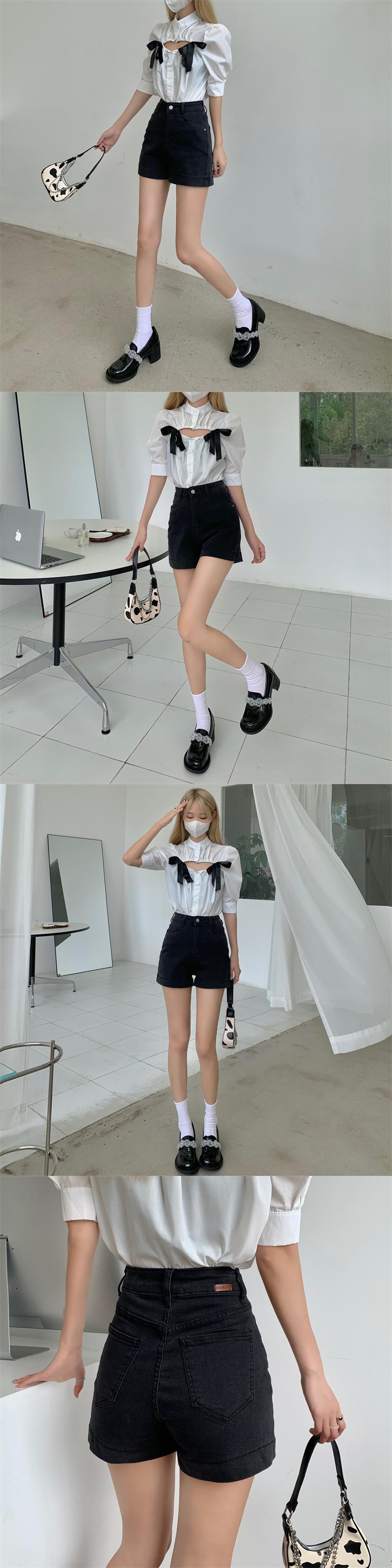 ブラックジーンズ サマーハイウェスト薄手ショーツ カジュアルAラインパンツ 夏物 ブルマー クレセントシティ27823979008