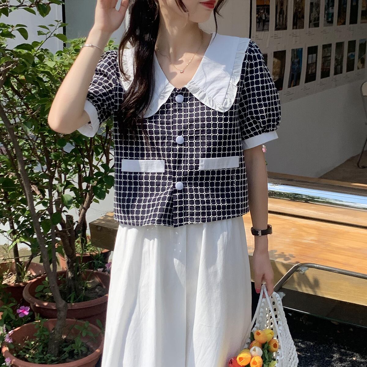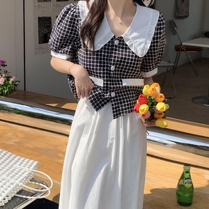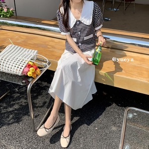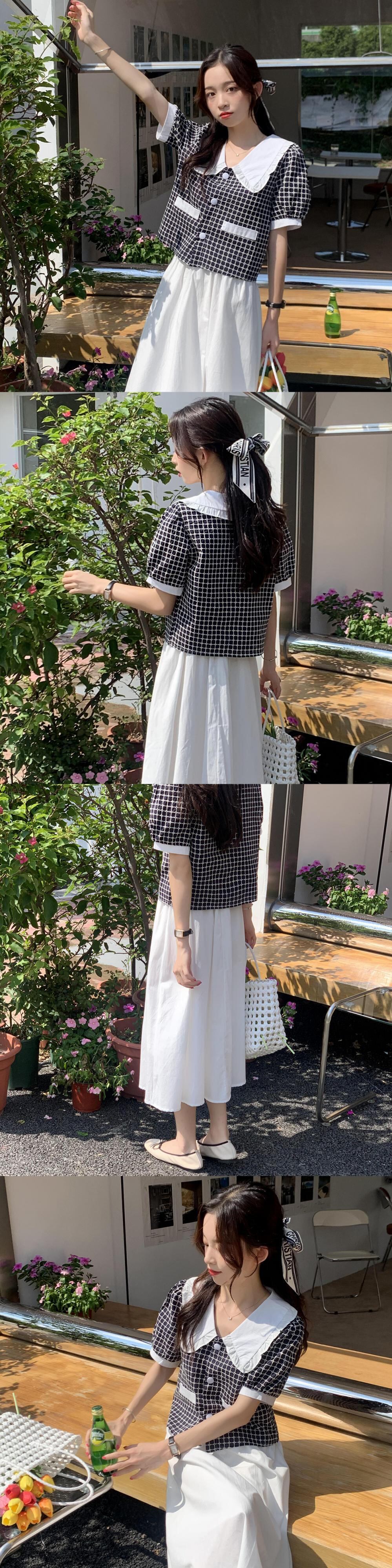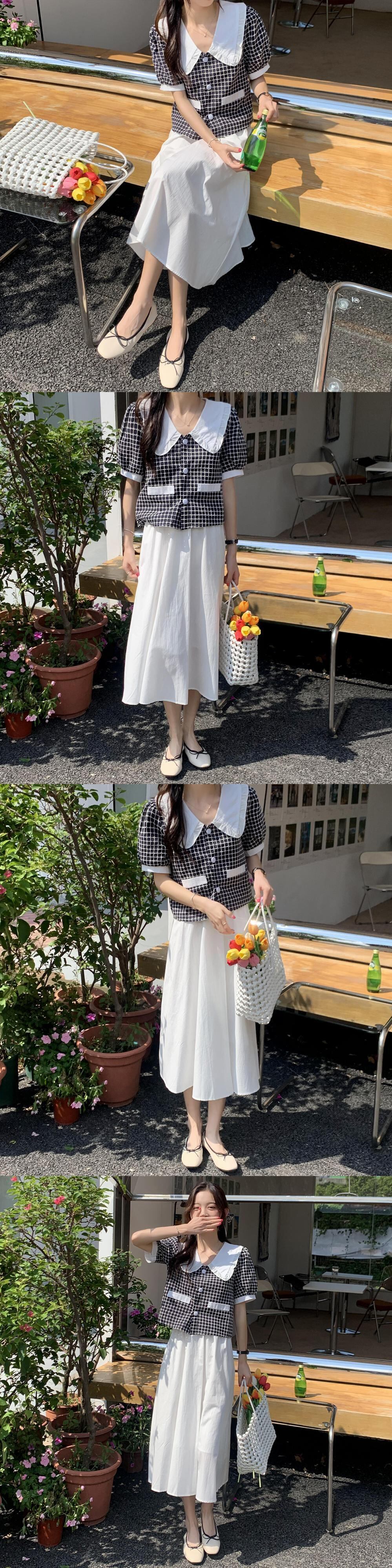 スリーブ格子柄シャツ ホワイトウェストスカート セット クレセントシティ54219674475
