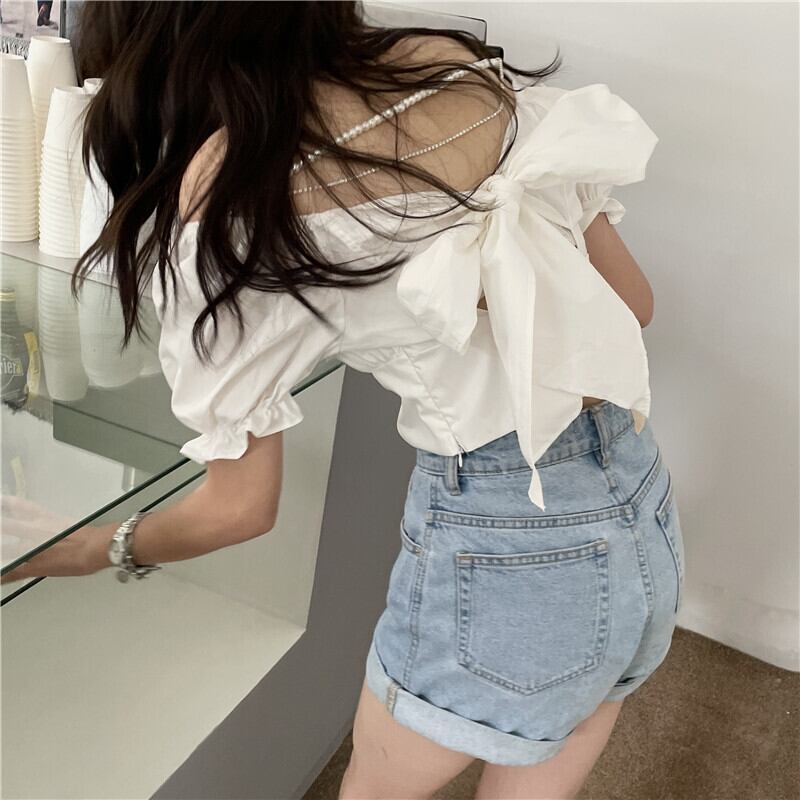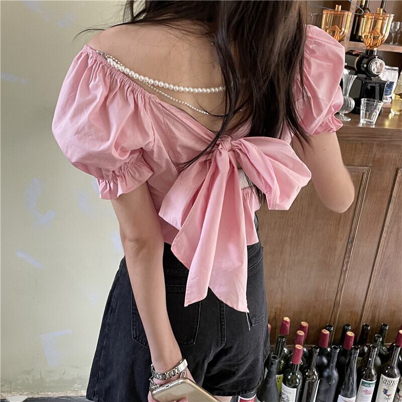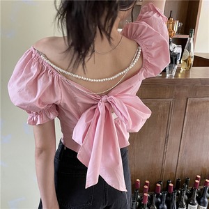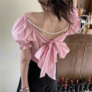 リボンホルターシャツ サマースリーブハイウェストトップス 大人ガーリー スウィート キュート カジュアル 夏物 クレセントシティ29085599313