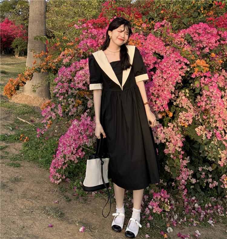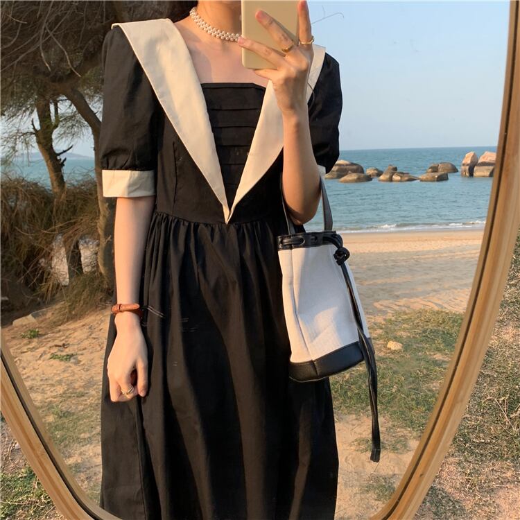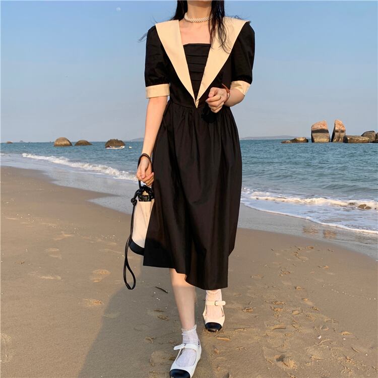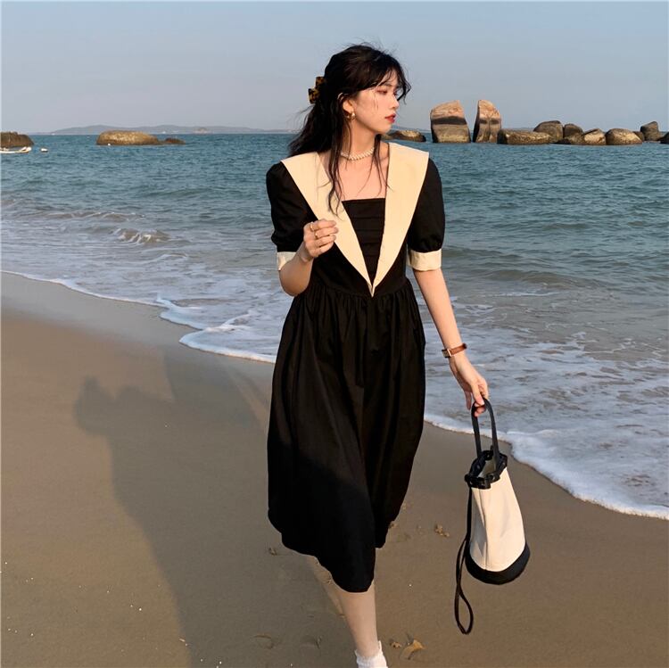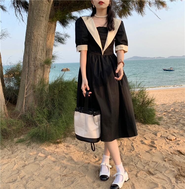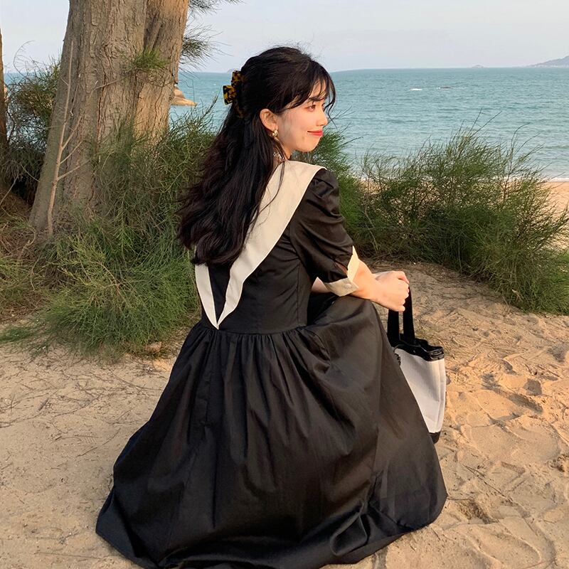 スタイルウェストドレス サマー薄手ブラックAラインスカート 大人ガーリー スウィート キュート カジュアル 夏物 クレセントシティ37968611388
