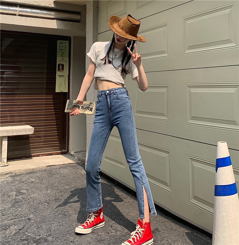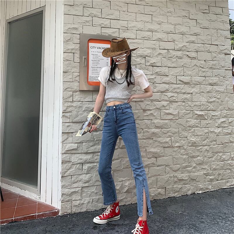 ジーンズ レディースサマーハイウェストウェストパンツ スリム 夏物 クレセントシティ19425559116