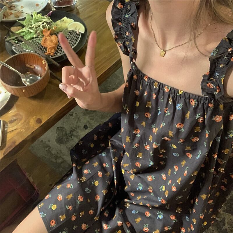 スタンダードドレス サマールーズ薄手フローラルスカート レトロ 大人ガーリー スウィート キュート カジュアル 夏物 花柄 クレセントシティ51447065565