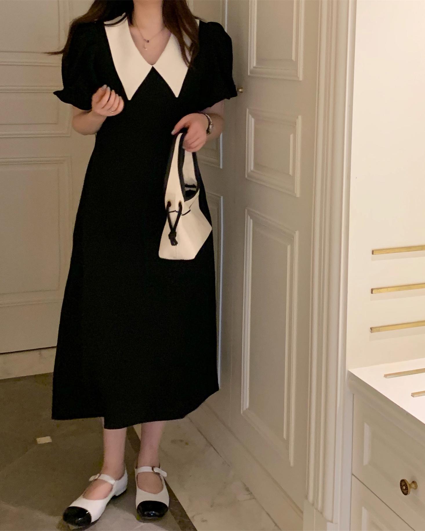 スタイルウェストドレス サマースリーブスタンダードロング薄手Aラインスカート レトロ 夏物 クレセントシティ73078421760